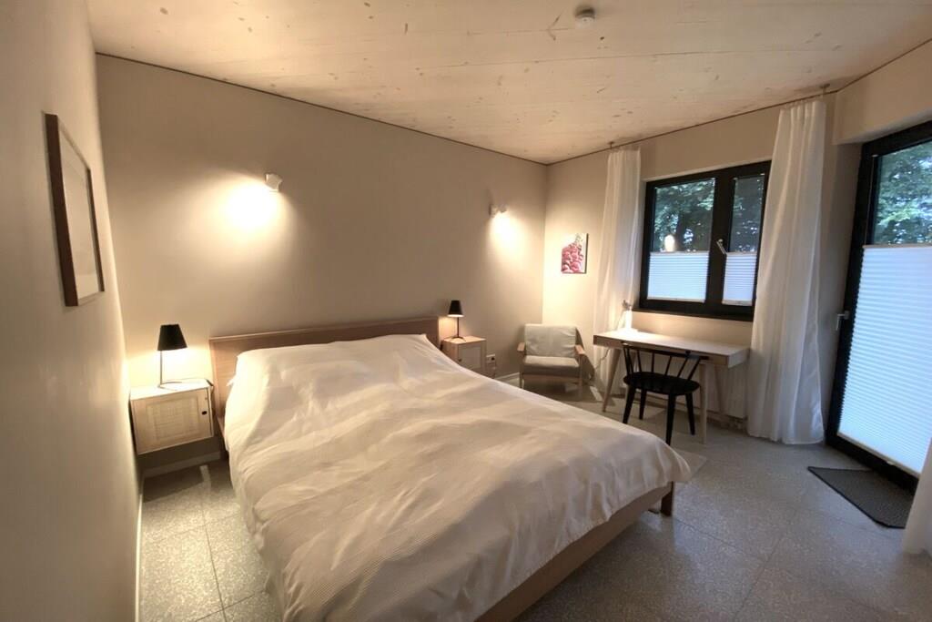 Ein Ferienhaus am See, in dem man eine schöne Zeit mit netten Leuten verbringen, sich entspannen und wohlfühlen kann. Es gibt eine gut ausgestattete Küche, einen Weber-Gasgrill und viele Plätze im Ferienhaus, die nach einem guten Buch oder netten Gesprächen rufen. Ob im Wohnzimmer mit der großen Fensterfront, auf dem Windowseat vorm Panoramafenster im ersten Stock oder im Liegestuhl auf der Dachterasse: fast alle Räume sind zum See ausgerichtet und bieten wunderschöne Perspektiven ins Grüne. Im Sommer kann man im Badeanzug zur 50 Meter entfernten Badestelle schlendern, im Herbst und Winter nach einem Spaziergang durch den Wald nebenan, vor dem Kaminofen entspannen. Es gibt zwei Schreibtische, an denen man mit Blick ins Grüne arbeiten oder den Kindern einen Platz fürs Ausmalbuch geben kann. Das Ferienhaus hat Platz für bis zu 6 Erwachsene. Wenn Sie mit Kindern reisen, bieten wir bis zu 8 Schlafplätze an.