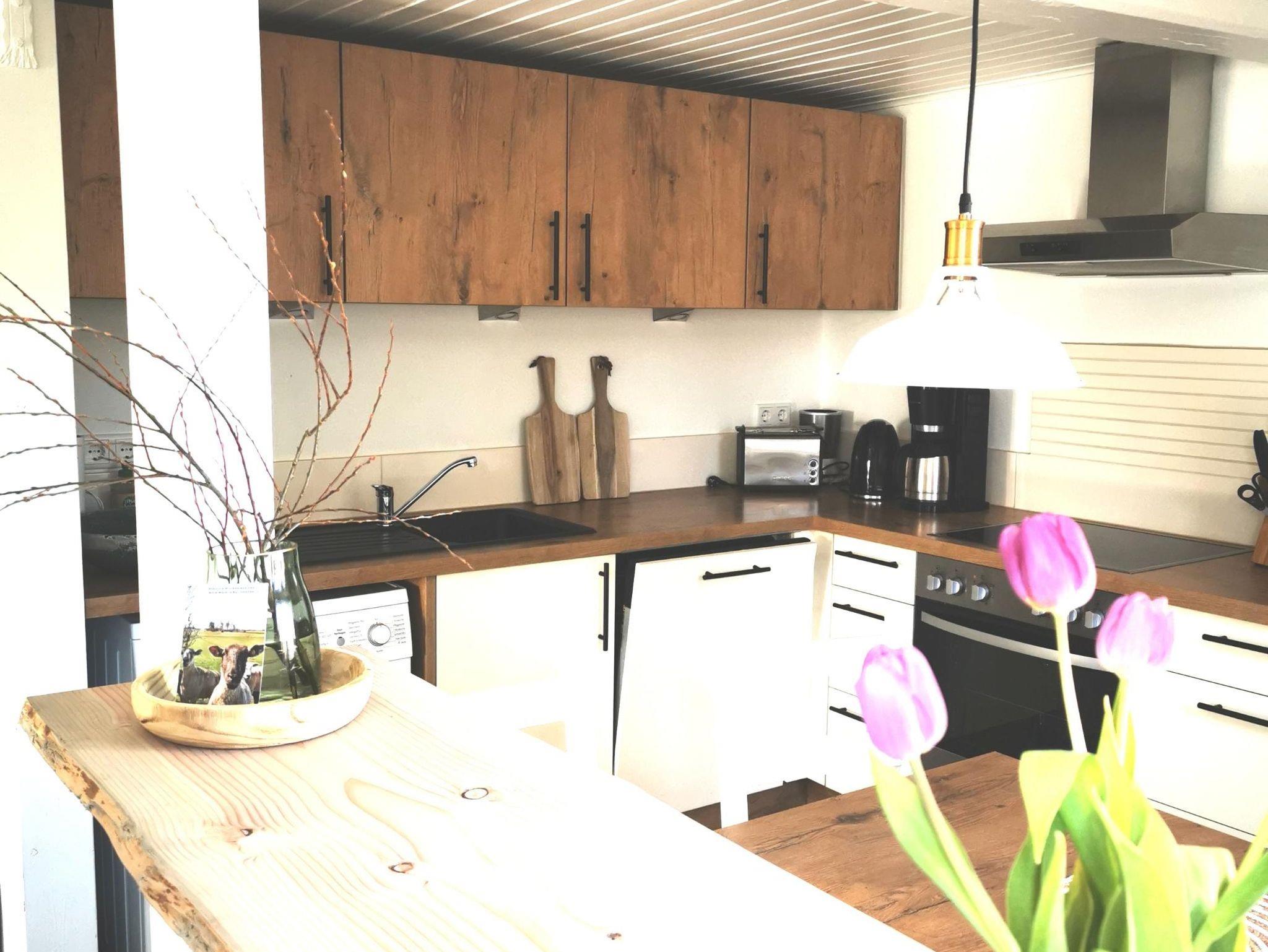 Die moderne Küche ist komplett ausgestattet mit Backofen, Ceran-Kochfeld, Geschirrspüler und einem einladenden Essbereich – perfekt für kreative Kochmomente.