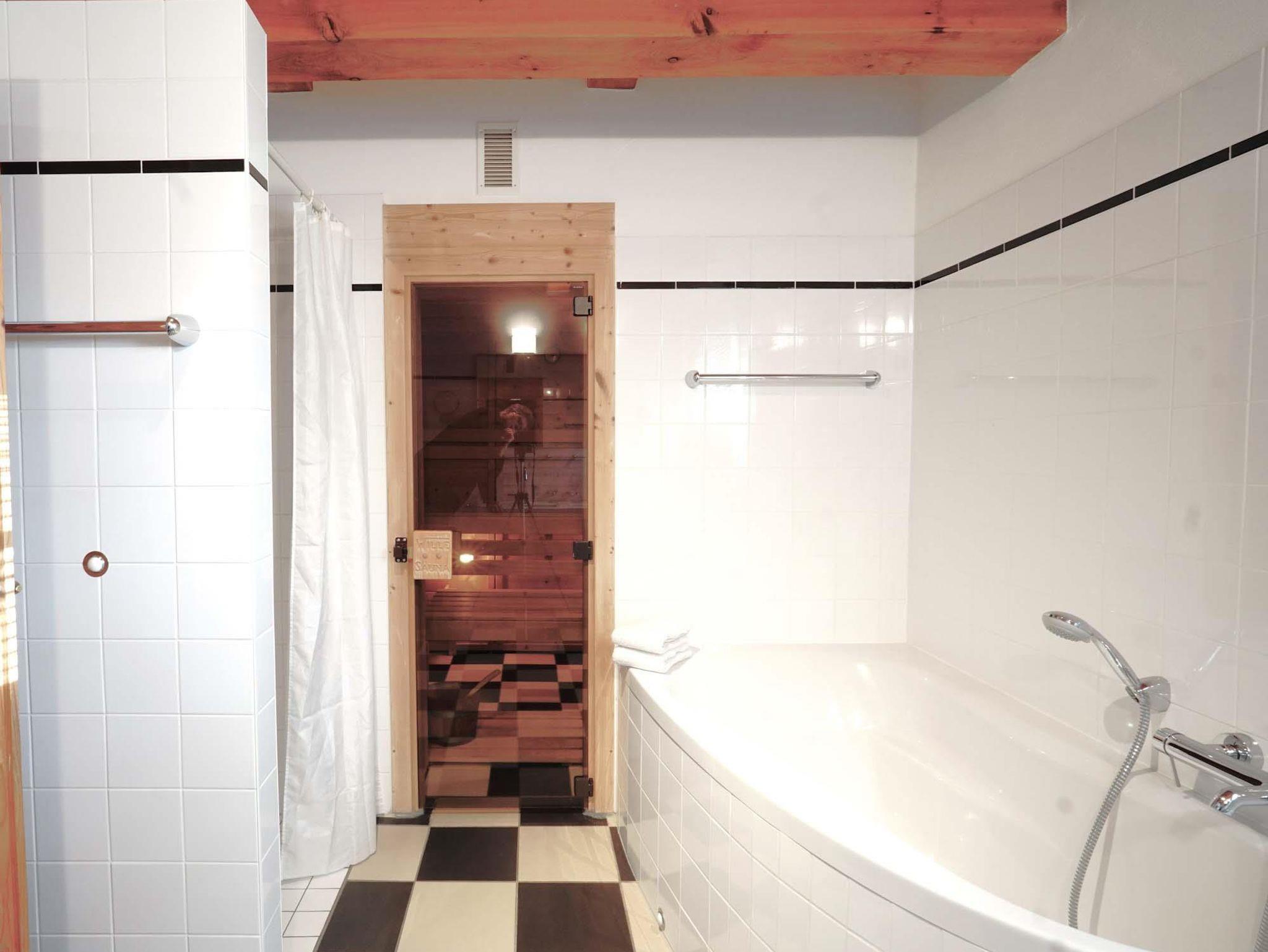 Das Ferienhaus verfügt über drei Schlafzimmer (drei Doppelbetten mit 180 × 200 cm) und zwei Badezimmer (ein Dusch- und Wannenbad mit Sauna und ein weiteres Duschbad). Bei noch mehr Platzbedarf kann auf Wunsch ein viertes Schlafzimmer (Doppelbett 160 x 200 cm) hinzugebucht werden.