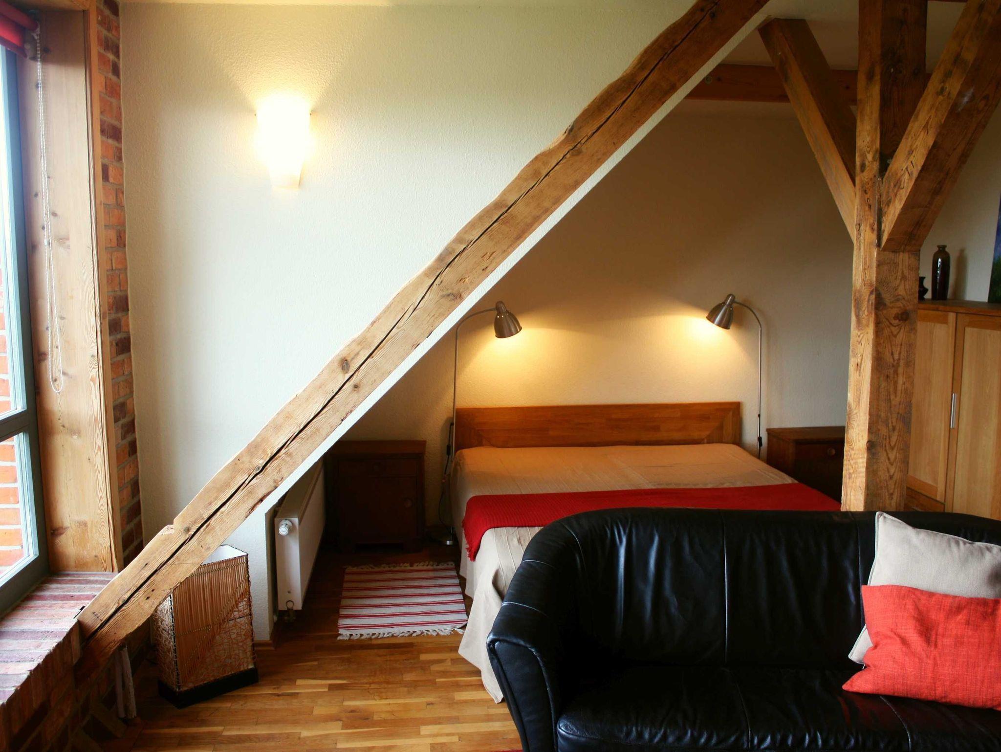 Balken, Schrägen und die rustikale Einrichtung verleihen der Wohnung ein gemütliches Flair. Ihre vierbeinigen Lieblinge können hier leider nicht mitkommen. Grill-und Sitzmöglichkeiten finden Sie auf unserem großen Grundstück.