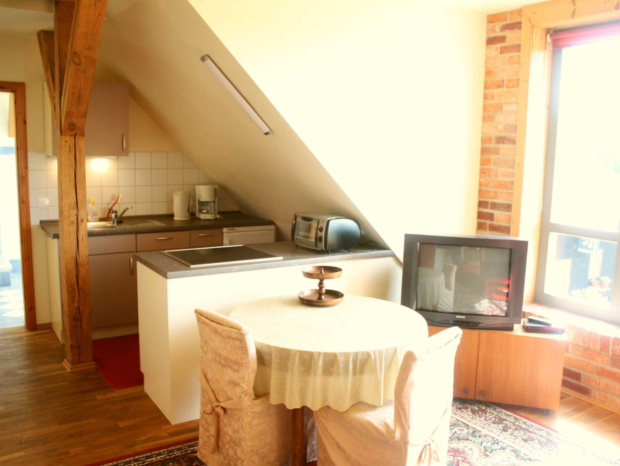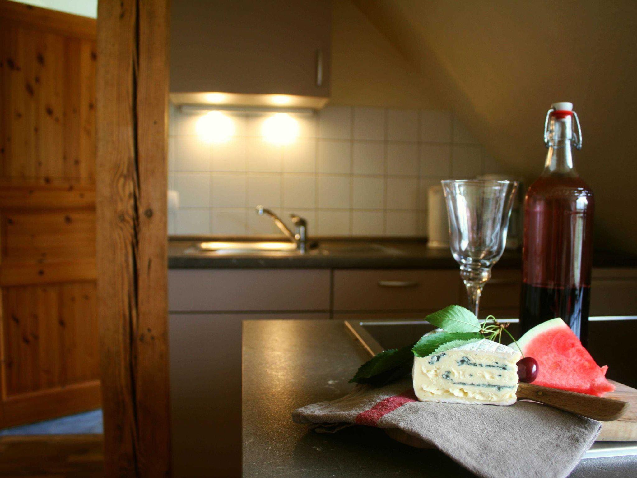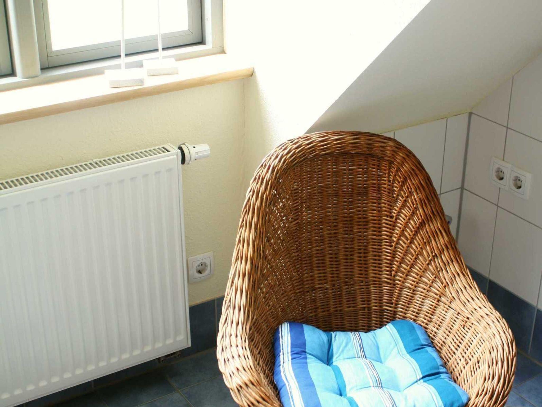 Diese Wohnung für 2 Personen liegt im oberen Geschoss und bietet durch das große Panoramafenster den schönsten Ausblick über die weiten Felder und Wälder. So wohnen Sie: