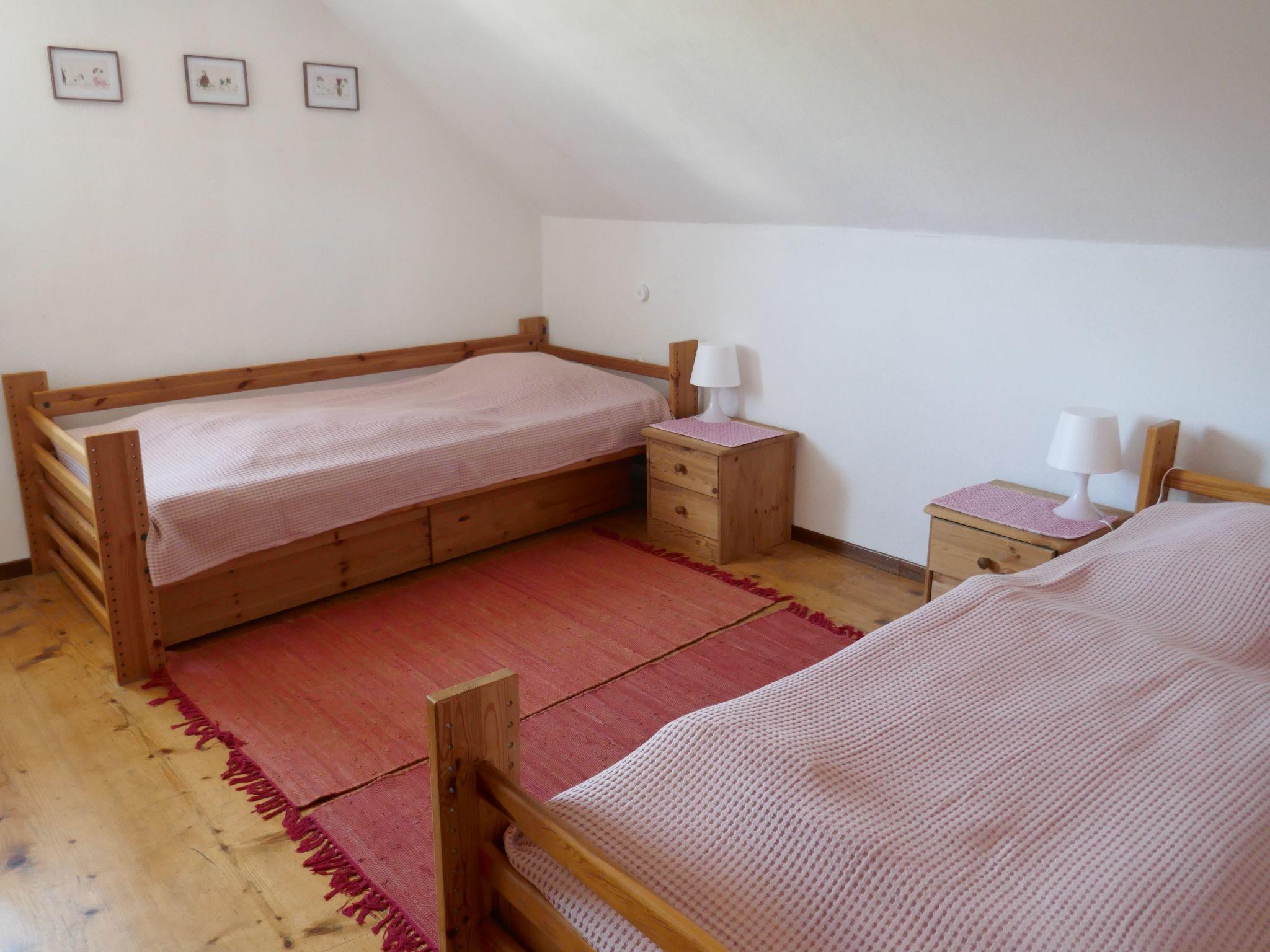 On the ground floor of the house there is a fully equipped kitchen with a 4-ring hob, large fridge, oven and a Nespresso coffee machine. A cosy dining room and a living room with pull-out couch invite you to linger. On the first floor you will find a master bedroom with double bed and cot, another bedroom with 2 single beds and a bathroom with shower, WC and washing machine. All rooms are fitted with linoleum or rustic wooden floors.