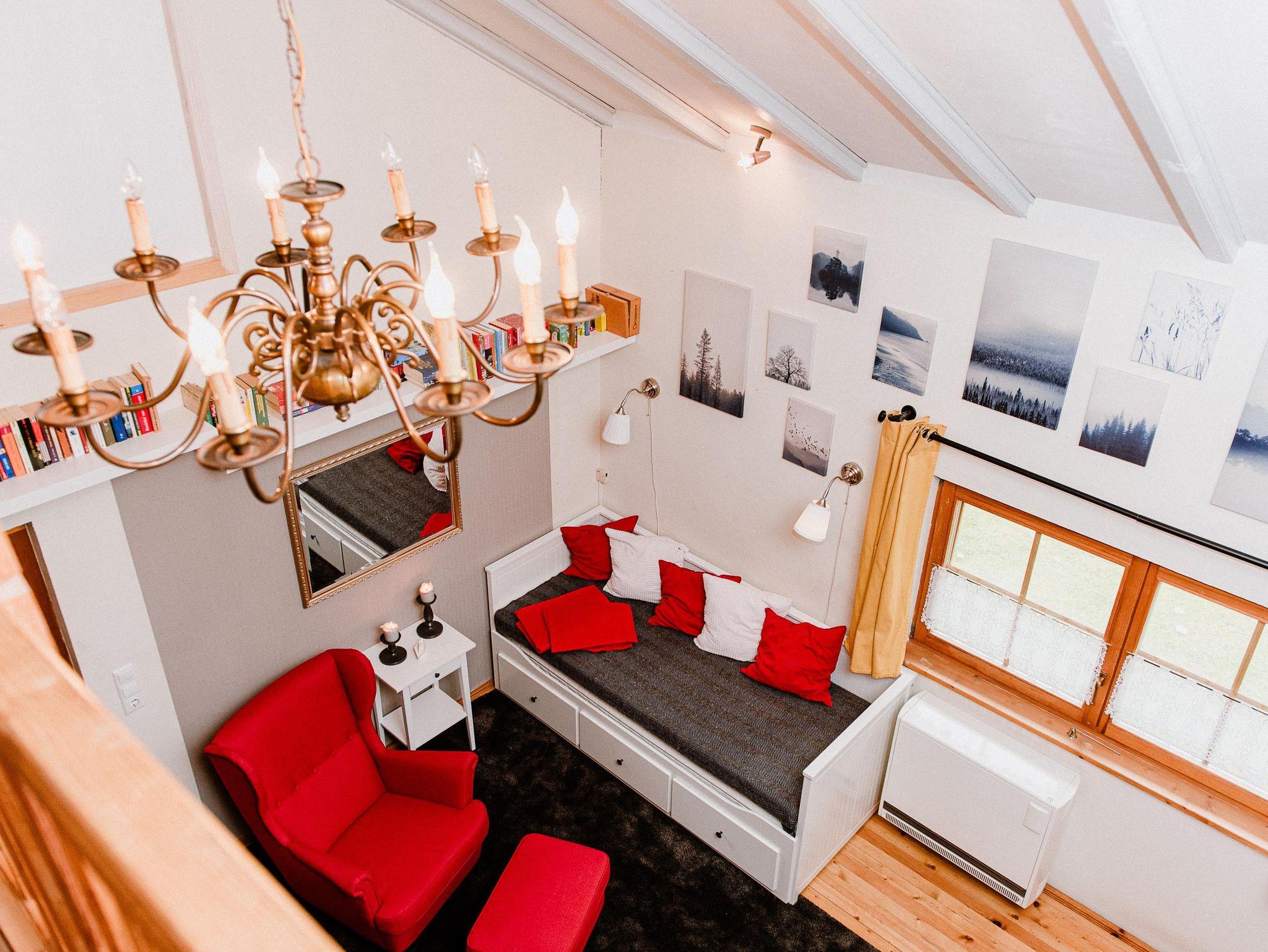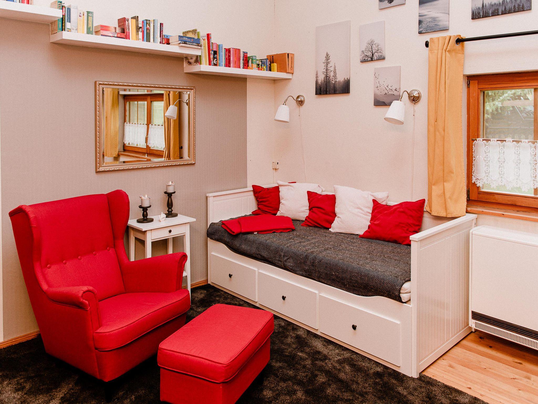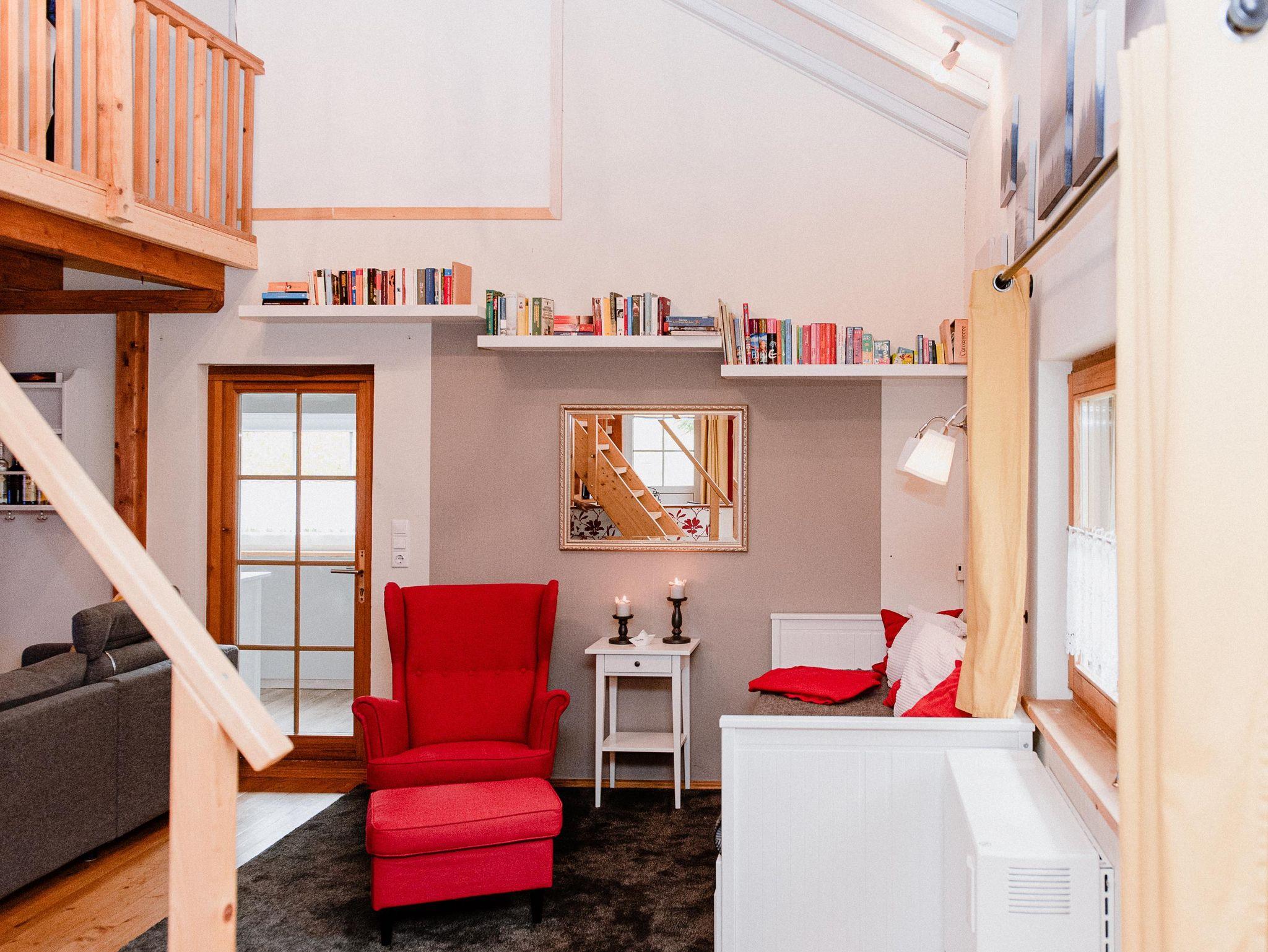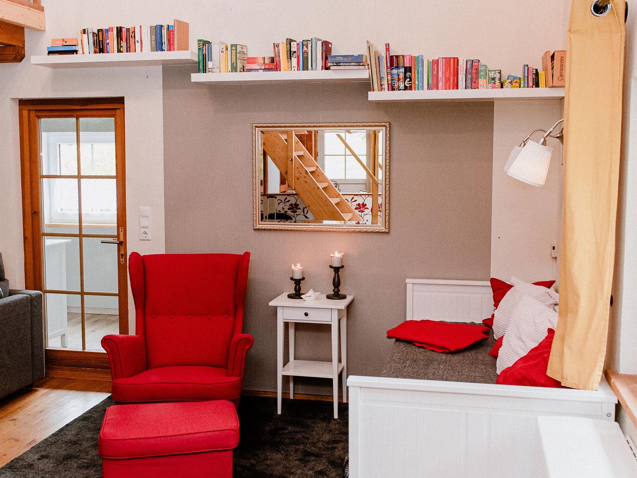 Der große Wohnraum ist ausgestattet mit einem Kamin, das gemütliche Sofa lädt zum lesen, lümmeln und spielen ein. Mit dem großen Flat-TV inkl. Soundbar, der Wii Spielkonsole, einer Dartscheibe, einer großen Anzahl an Brett- spielen und Büchern kommt garantiert keine Langweile auf.