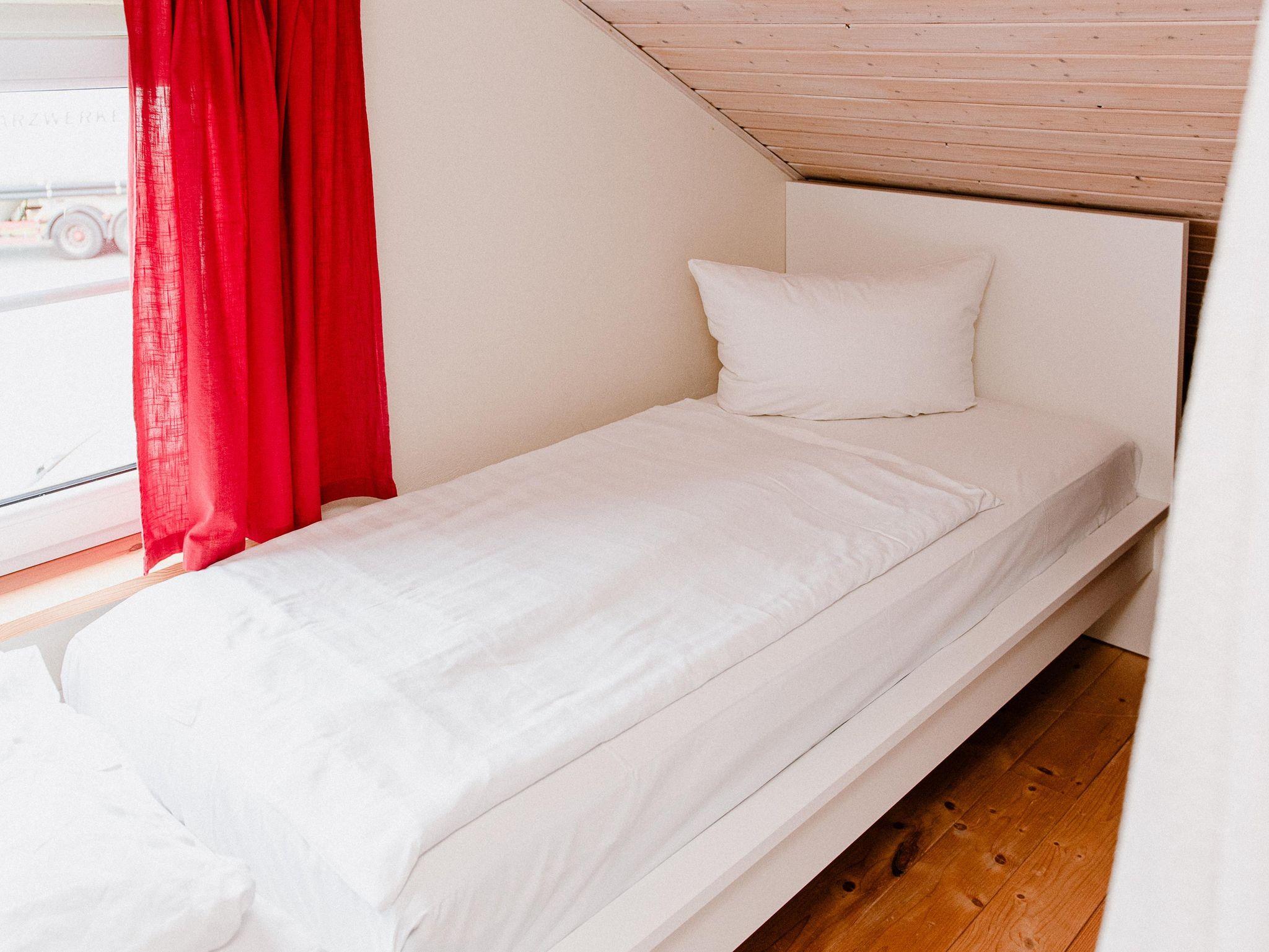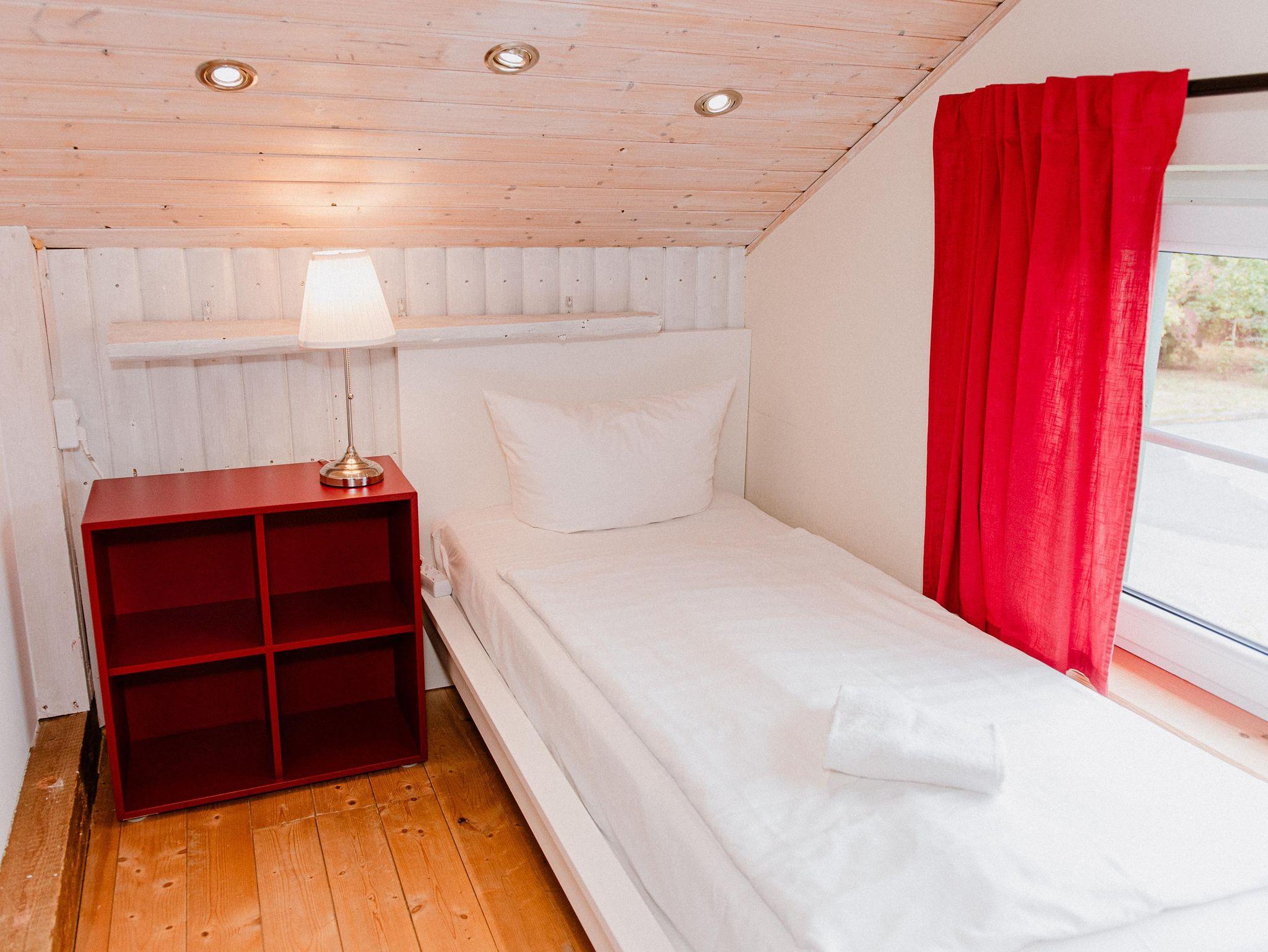 Zwei separate Schlafzimmer, ausgestattet mit einem Doppelbett und zwei Einzelbetten. Zusätzlich kann das Tagesbett zum Schlafplatz umgewandelt werden und auch ein Babyreisebett ist vorhanden.