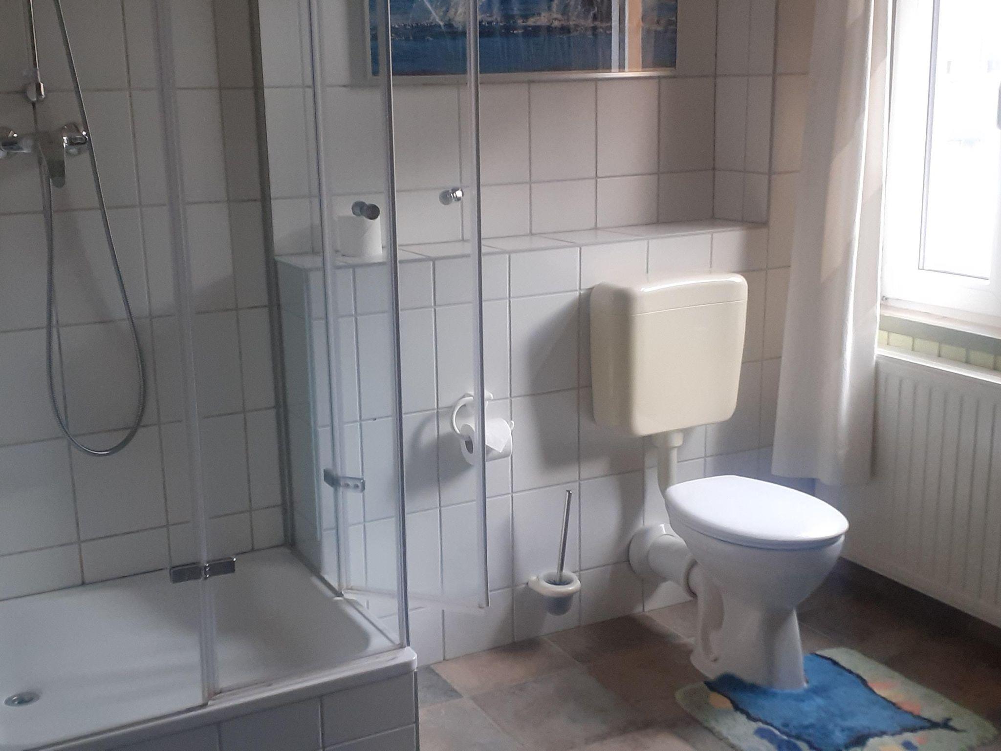 Duschbad, Waschmaschine. 2 Schlafzimmer (1x 2 Einzelbetten , 1x ein 1,40 m. Bett)