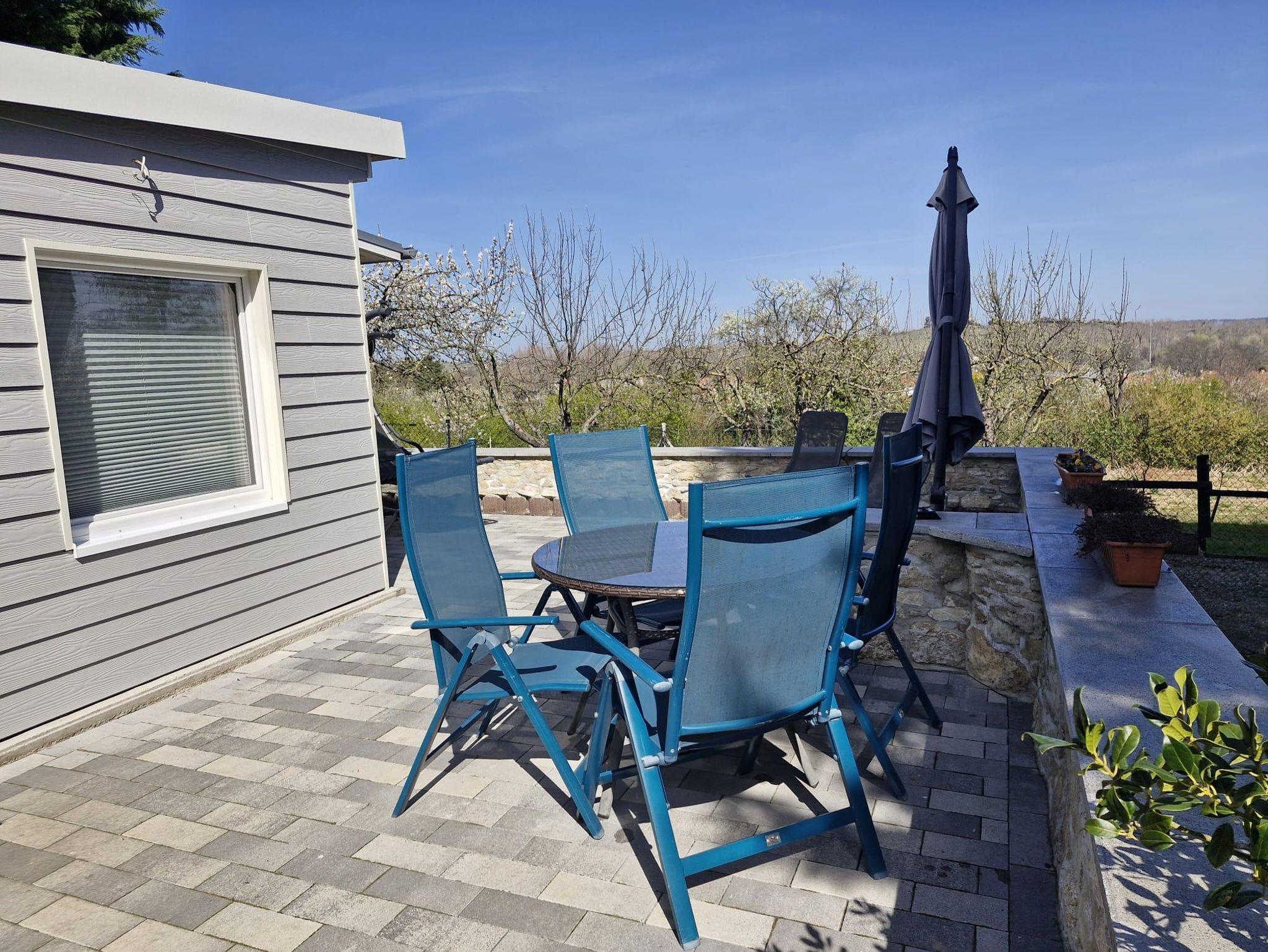 den Panoramablick auf das Naturschutzgebiet Teufelsmauer sowie auf Wiesen und Berge. Ausgestattet ist Ihr Ferienhaus mit einem geräumigen Wohnzimmer integrierter Küche, Geschirrspüler, Backofen und Küchengeräten, SAT-TV. DU/WC. Schlafzimmer mit Doppelbett und Tandembett. Aufbettung