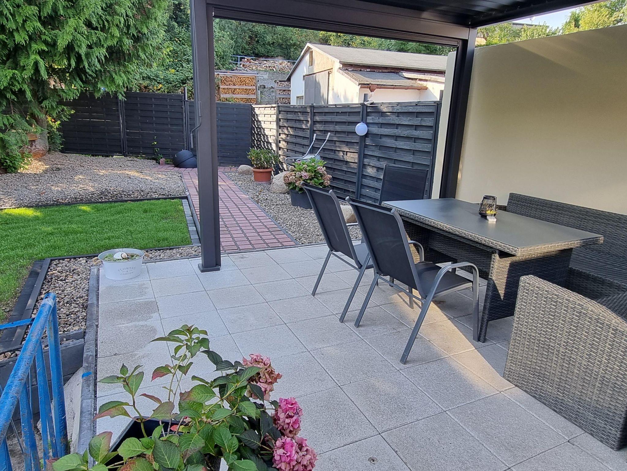 Herzlich Willkommen in unserer modern eingerichteten Ferienwohnung Stecklenburg. Die Wohnung verfügt über einen separaten Eingang und liegt im Erdgeschoss des Hauses. Sie bietet Ihnen Wohnzimmer mit Sitzbereich, SAT-TV und Essbereich, ein seperates Schlafzimmer sowie ein Bad mit Dusche und WC zur Alleinnutzung. Aus dem Wohnzimmerfenster genießen Sie den Blick auf die nahegelegene Stecklenburg, welche unserer Ferienwohnung ihren Namen gab. Das Schlafzimmer ist mit einem Kingsize- Bett (1,80 m) ausgestattet. Eine Aufbettung im Wohnzimmer ist durch das Schlafsofa ( Liegefläche 1,40 m) möglich. Die Küche ist mit Backofen, Geschirrspüler, Kühlschrank, Küchengeräte - Kaffeemaschine, Toaster und Wasserkocher ausgestattet.