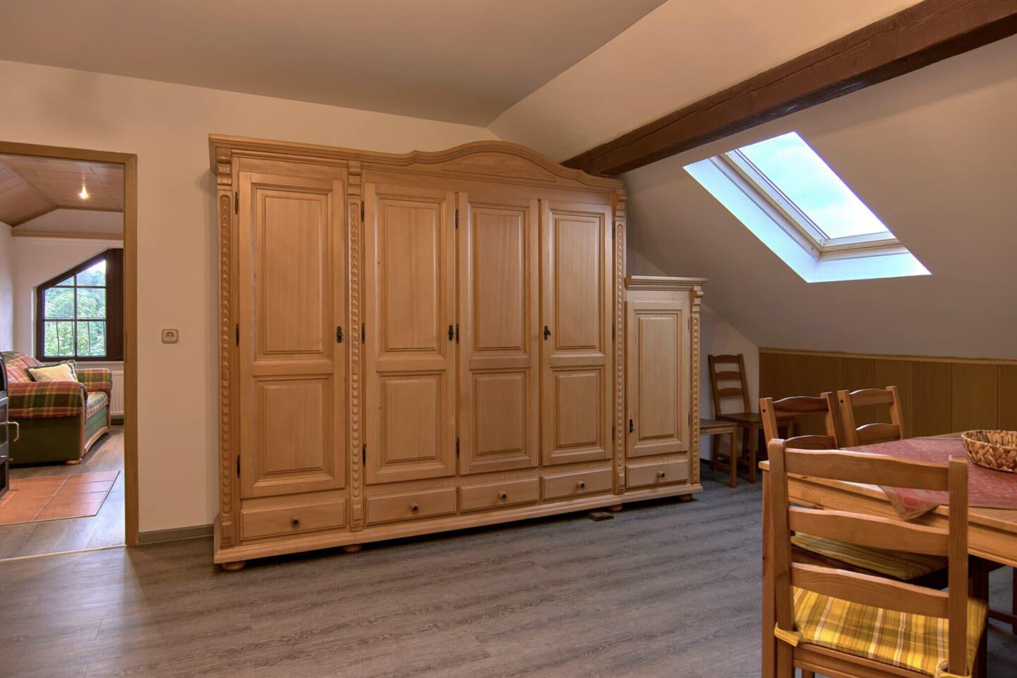 Ferielejligheden ligger i Thale - i bydelen Friedrichsbrunn. Luftkurstedet Friedrichsbrunn er tildelt mærket »Natur-Harz«. Ca. 186 km markerede vandrestier og om vinteren præparerede langrendsløjper indbyder til aktiv afslapning. Boligen ligger på en indhegnet grund og har 2 soveværelser, det ene med dobbeltseng og det andet med enkeltseng. Med sovesofaen i stuen tilbyder boligen på 65 m² plads til op til 5 personer. Køkkenet er fuldt udstyret og opfylder alle ønsker. I haven er der havemøbler til rådighed, så man kan slappe af efter en begivenhedsrig dag.