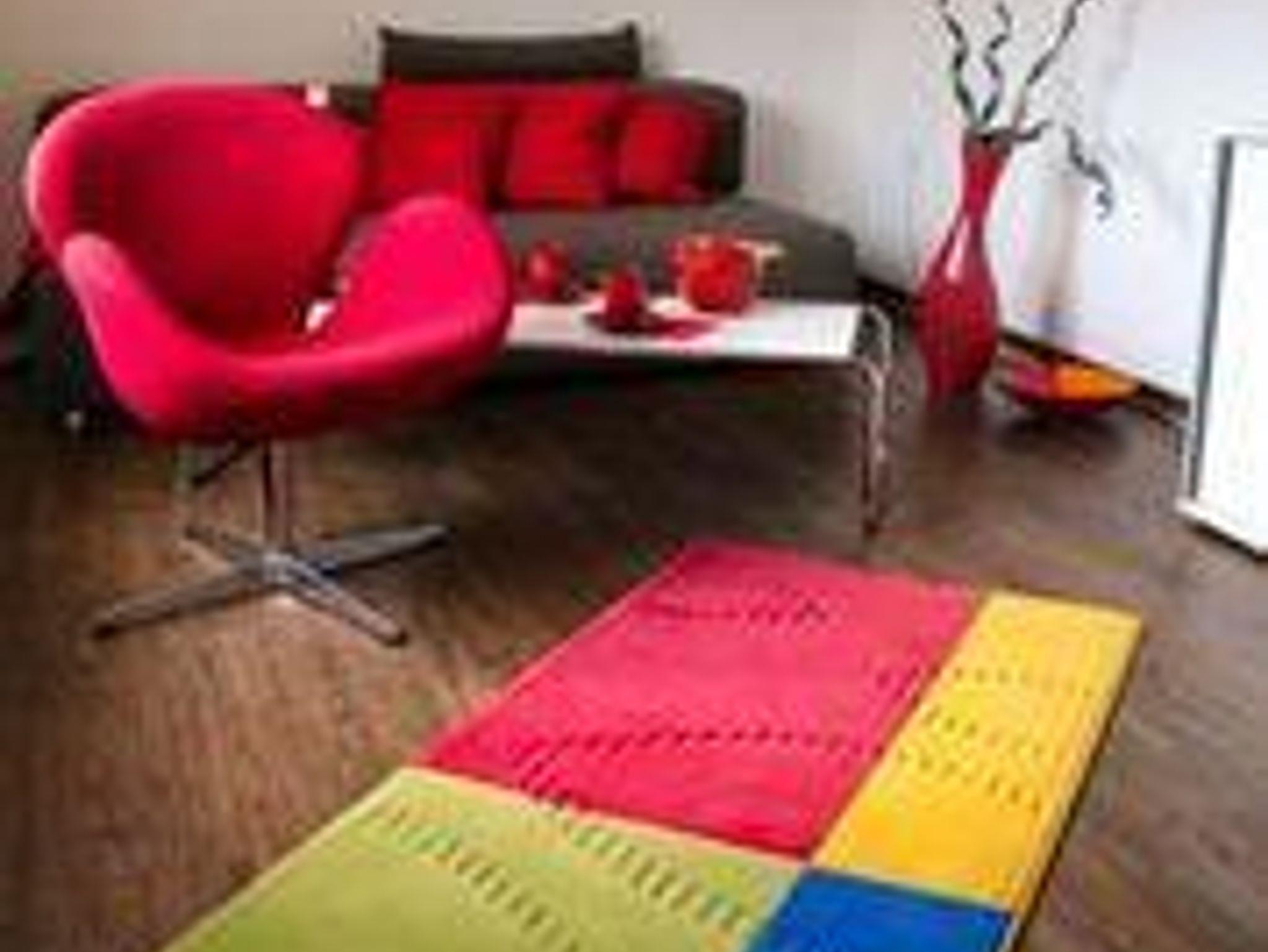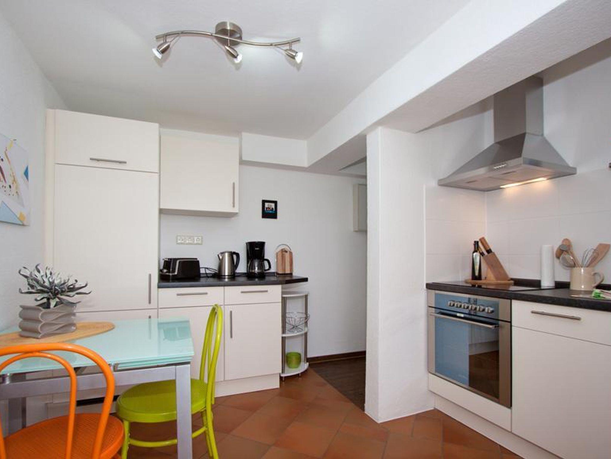 Wohnzimmer mit TV, CD-Anlage, Schlafzimmer mit Doppelbett (1,60 m breit). Einbauküche, Bad mit DU/WC.