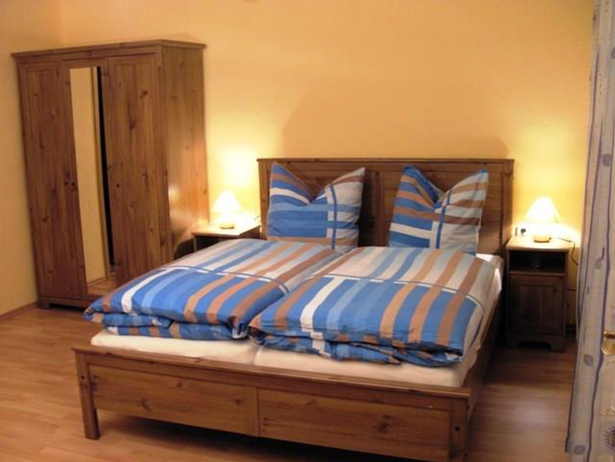 Abgeschlossene Wohnung in der 1. Etage mit Wohnzimmer, TV, Schlafzimmer, komplett eingerichtete Wohnküche, Bad mit Wanne und DU/WC, Freisitz und Grill vorhanden. Fewo unweit des Bodetals, des Bahnhofes und in Zentrumsnähe. PKW-Stellplatz vor dem Haus Aufbettung möglich.