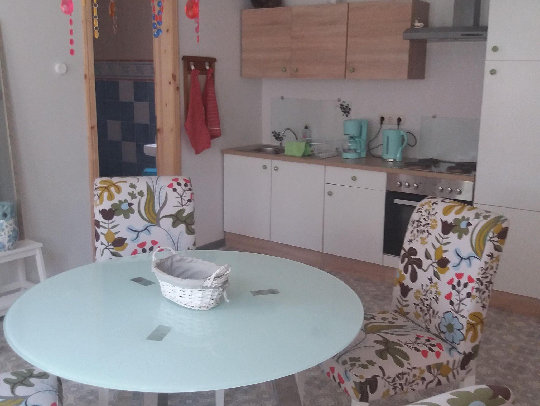Die Wohnung ist ca. 45 qm groß zzgl. einer 12 qm großen Terrasse zum Gartenbereich hin. Sie verfügt über einen Wohnbereich mit Schlafcouch (1,50 x 2,00 m), Tv, Elektrokamin, einer Küche mit Kühlschrank, Gefrierfach, Wasserkocher, Toaster, Kaffeemaschine, einem Schlafzimmer mit Doppelbett (1,50 x 2,00 m) sowie einem Bad mit Dusche.