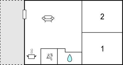 Opholdsstue/køkken 23m2 - 2 Sovepladser. (Sofa, madras eller lignende).