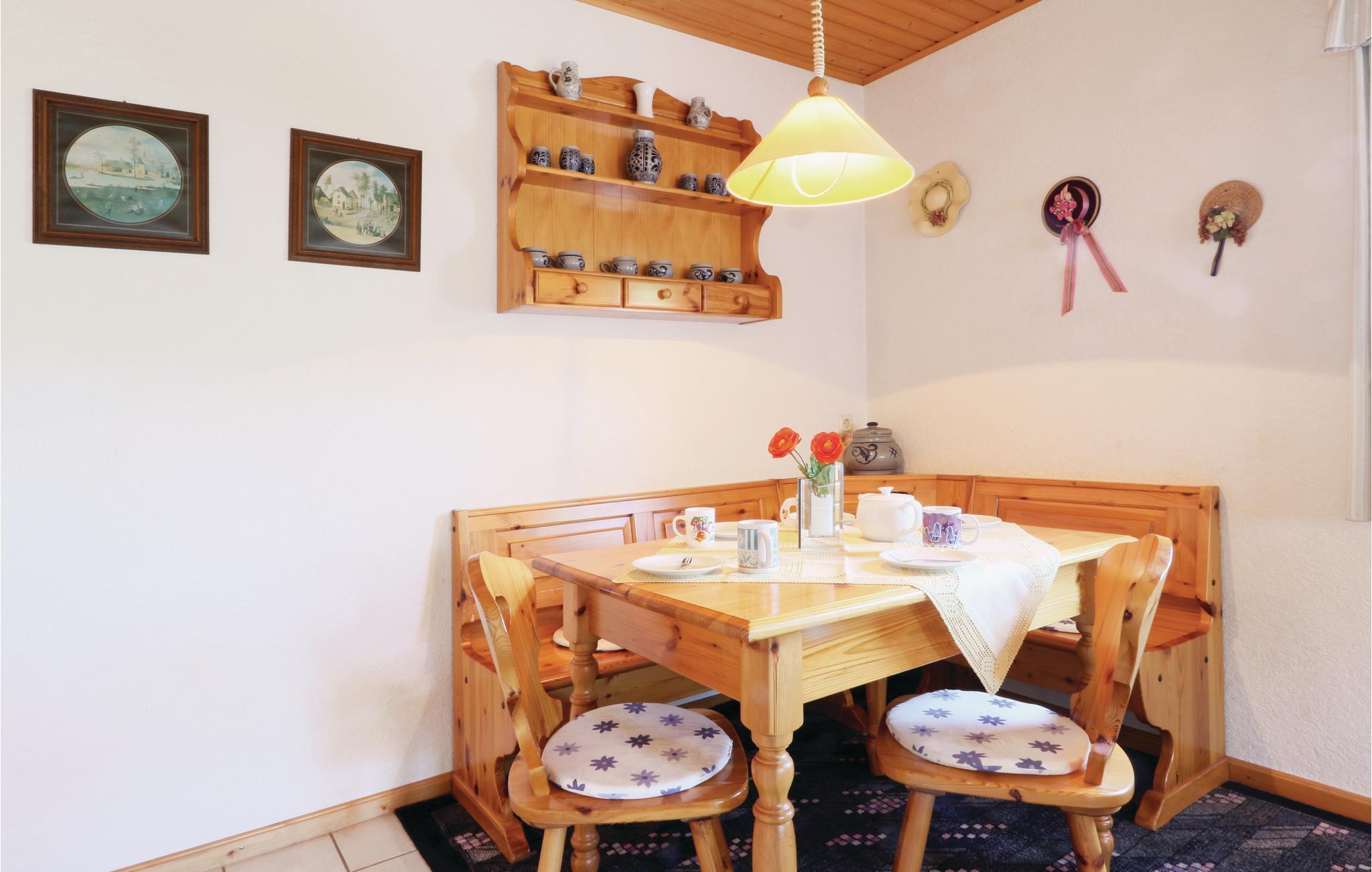 Tag på dejlig uforglemmelig ferie i denne rustikke ferielejlighed i ferieparken Himmelberg, i nærheden af Luftkurstedet Thalfang. Ferieboligen ligger i stuen, indretningen med mange træelementer skaber en hyggelig atmosfære. I det første soveværelse er der en dobbeltseng, det andet soveværelse råder over en enkelt- og en etageseng. I den åbne daglig- og spisestue er der god plads til hele familien.