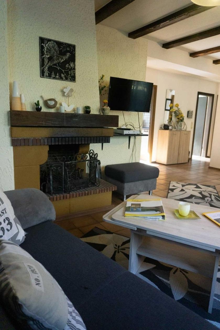 Willkommen in der großzügigen Ferienwohnung Im Wiesengrund 39/2 im Erdgeschoss! Auf ca. 65 m² Wohnfläche genießen bis zu 4 Personen höchsten Komfort und eine Ausstattung, die keine Wünsche offenlässt.Das helle Wohn- und Esszimmer mit offenem Kamin lädt zu entspannten Abenden ein. Satelliten-TV, Radio und kostenfreies WLAN sorgen für Unterhaltung und Information. Zwei gemütliche Schlafzimmer garantieren erholsame Nächte.Die komplett ausgestattete Küche mit Geschirrspüler, Kühlschrank und Kaffeemaschine bietet alles, was Sie für gemeinsame Mahlzeiten brauchen. Nach einem aktiven Urlaubstag erwartet Sie die private Sauna für wohltuende Entspannung.Das moderne Bad ist mit einer barrierefreien Dusche und WC ausgestattet. Waschmaschine und Trockner stehen Ihnen ebenfalls zur Verfügung.Zur Wohnung gehört eine überdachte Terrasse mit Grillplatz perfekt für laue Sommerabende. Dank Gaszentralheizung ist es auch in der kühleren Jahreszeit angenehm warm.Erleben Sie unvergessliche Tage in Thalfang und genießen Sie Komfort und Gemütlichkeit in Ihrem Feriendomizil.