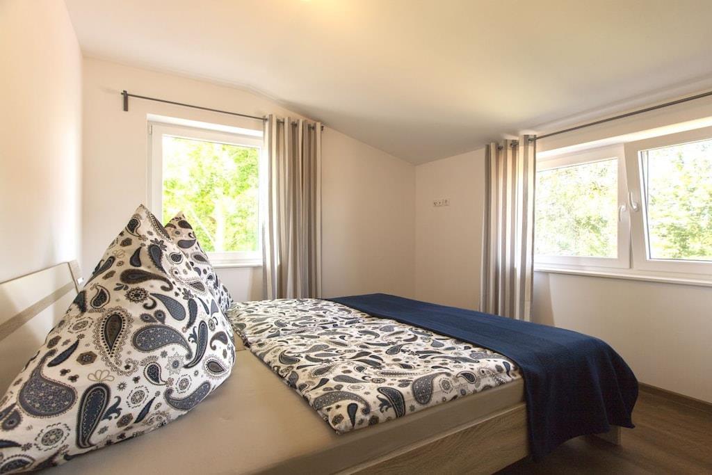 Die Fewo 2 ist für max. 4 Personen (ca. 55m²) geeignet. Kombinierter Wohn- und Essbereich mit großer bequemer Couch, Moderne Küchenausstattung, Spülmaschine, Ceranfeld, Kühlschrank mit Gefrierfach, Kaffeemaschine, Wasserkocher und diversen Küchenutensilien ausgestattet. Das Bad verfügt über eine ebenerdiger Dusche und WC. Die 2 Schlafzimmer sind jeweils mit einem Doppelbett (1,80m x 2,00m ) Kleiderschrank und Nachttischkonsolen eingerichtet. Alle Räume sind mit Fußbodenheizung versehen. 250 Mbit/s Glasfaser-Anschluss (WLAN-Zugangsdaten erhalten Sie vor Ort) Parkplatz PKW direkt am Haus und überdachte Fahrradabstellmöglichkeit sowie Terrasse mit Grill. Ein Kindereisebett und einen Hochstuhl können für je 10,00EURO dazu gebucht werden.