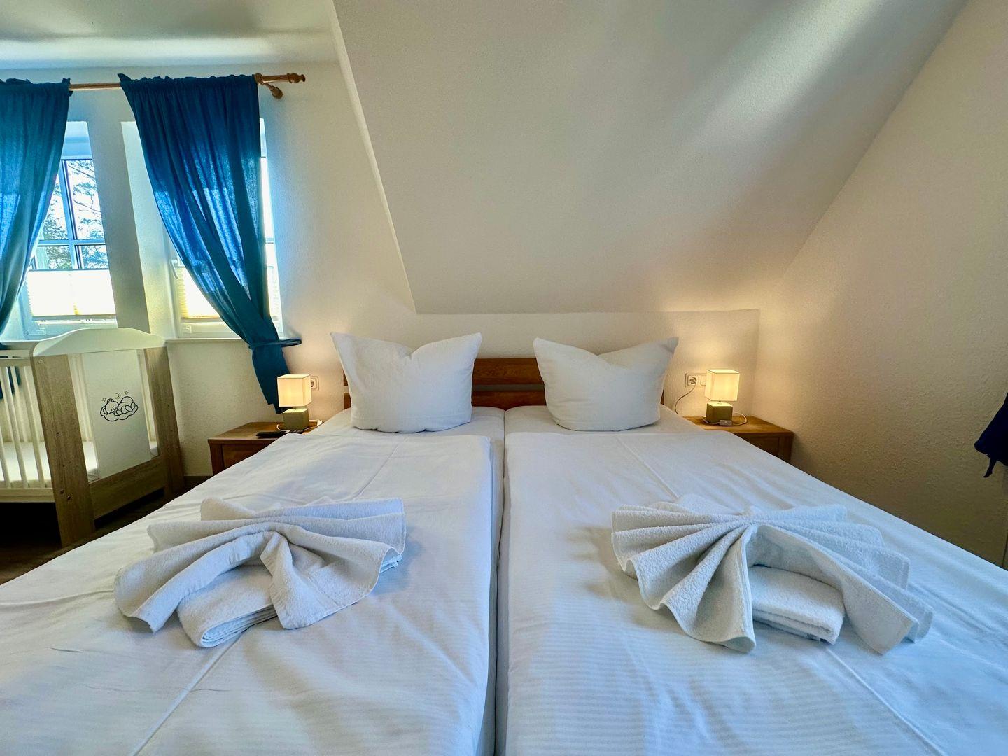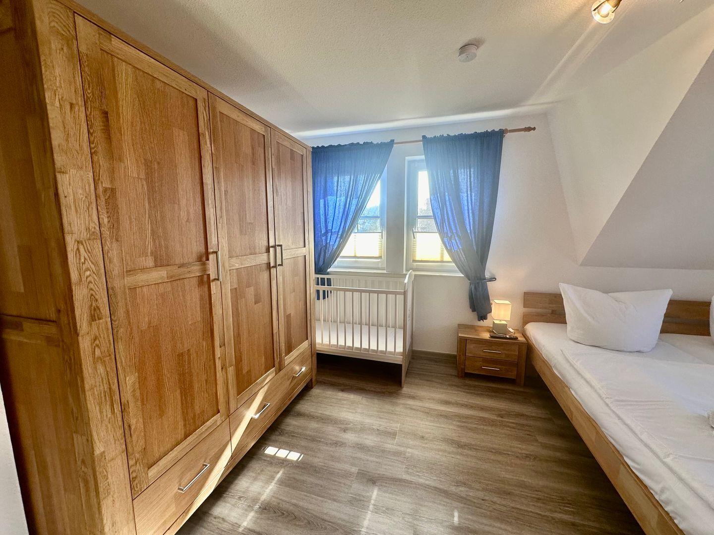 Im OG befindet sich das Elternschlafzimmer mit einem Doppelbett 180cmx200cm und einem eigenem Flachbildschirm, damit es keinen Streit beim Fernsehprogramm gibt.