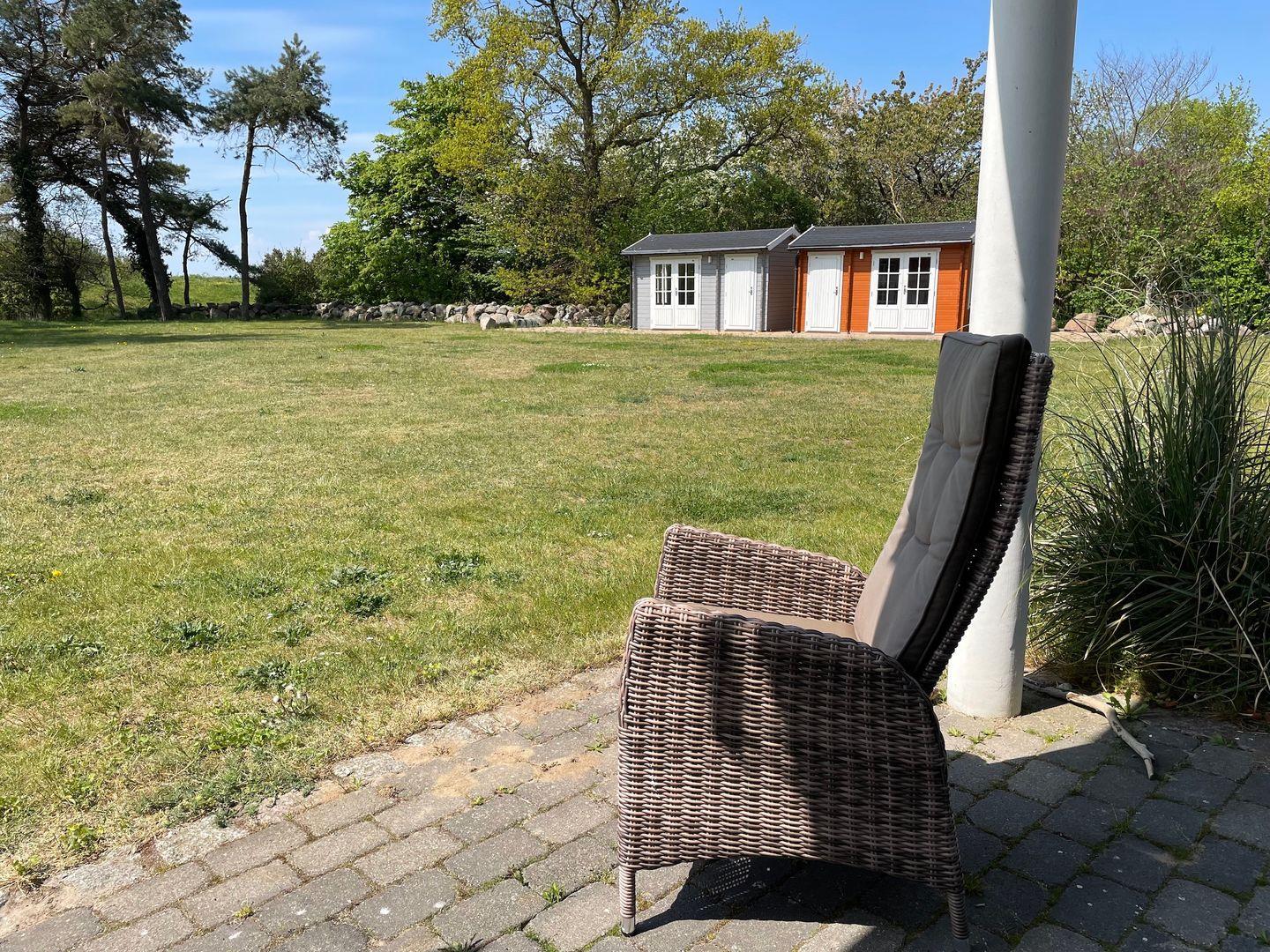 Auf der Terrasse mit bequemen Loungemöbeln bietet sich ein wunderbarer Blick in den Garten und das angrenzende Dünengebiet.