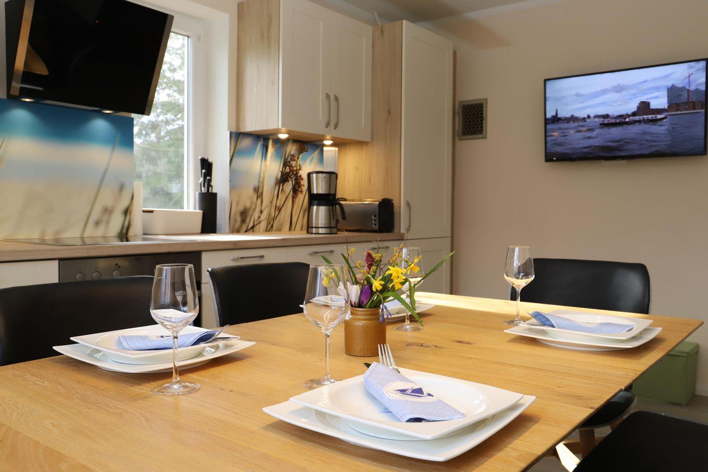 Die modern eingerichtete Ferienwohnung "Lachmöwe" bietet auf 110 qm Platz für 6 Personen.