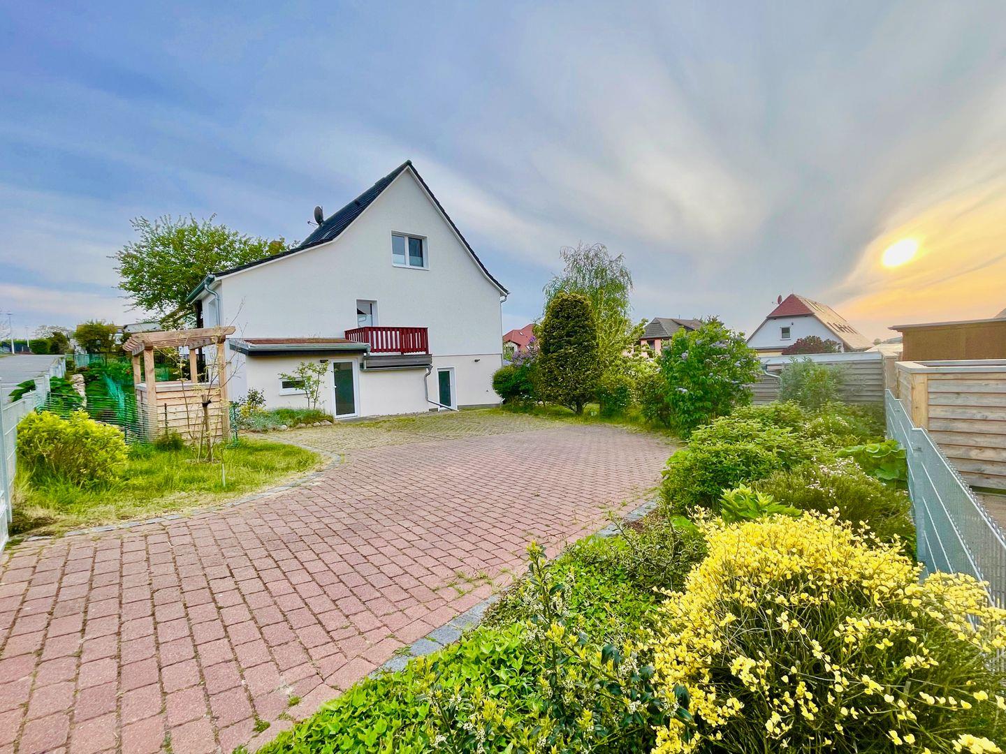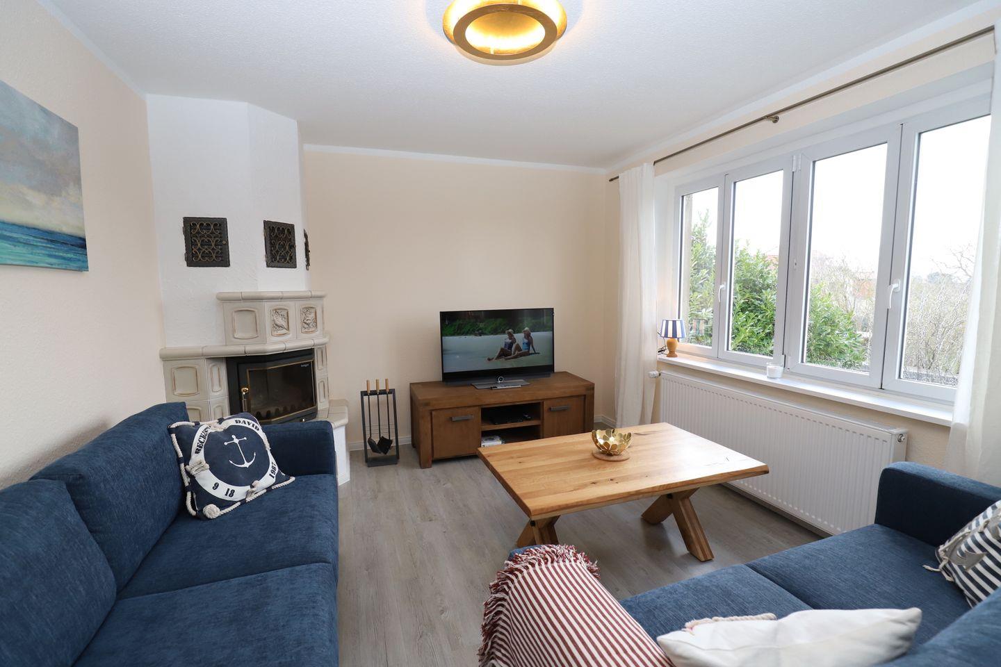 Sie erstreckt sich auf 2 Etagen, wobei die Schlafzimmer im Dachgeschoss liegen und im Erdgeschoss befindet sich die Küche und das große Wohnzimmer mit einer Sitzecke von wo aus man einen wunderschönem Blick über Thiessow genießen kann.