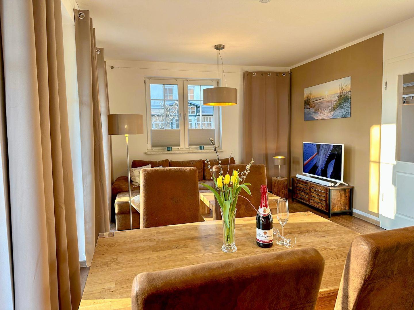 Ferienwohnung 2 in der Villa "Westwind" - eine helle große Erdgeschoss-Wohnung mit zwei Schlafzimmern und einer sonnigen Terrasse, die sich nur 50 m vom schönen feinsandigen Ostseestrand befindet.