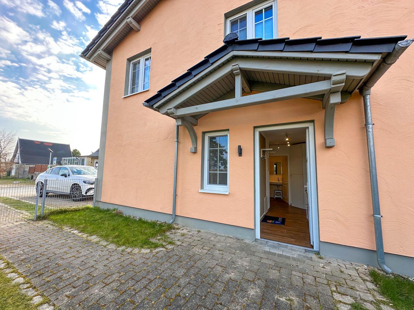 Ein PKW-Stellplatz vor dem Haus und ein eigener abschließbarer Fahrradschuppen beinhalten die Mietung der Wohnung.