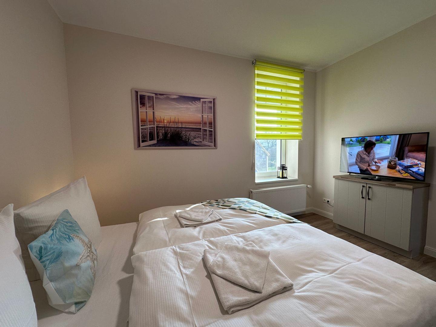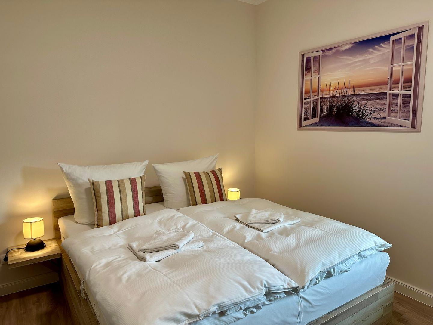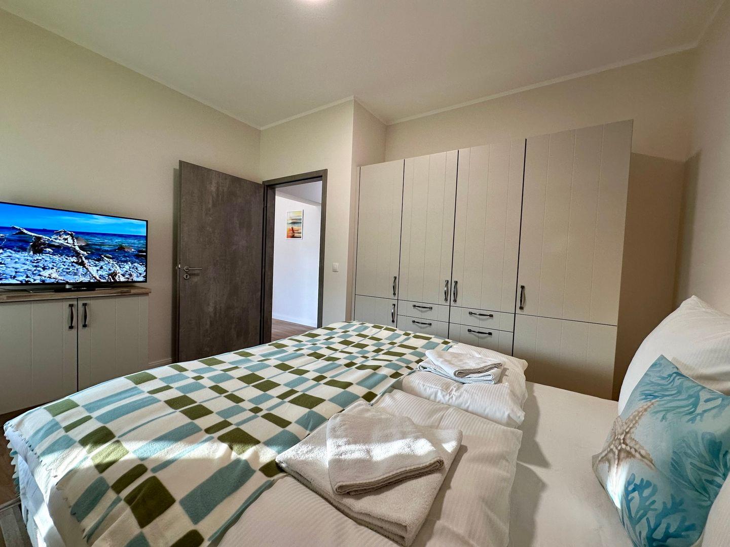 Das Wohnzimmer mit einer gemütlichen Couch bietet Ruhe und Entspannung und ist mit einer Essecke für gemütliche Abende mit der Familie abgerundet. Eine anliegende Küche mit gute Ausstattung, ergänzt den Wohnbereich. Die Spülmaschine erledigt für Sie den Abwasch, während Sie am Strand den Sonnenuntergang genießen können. Das Schlafzimmer mit einem Doppelbett (180cmx200cm) bietet Ihnen erholsame Nächte.