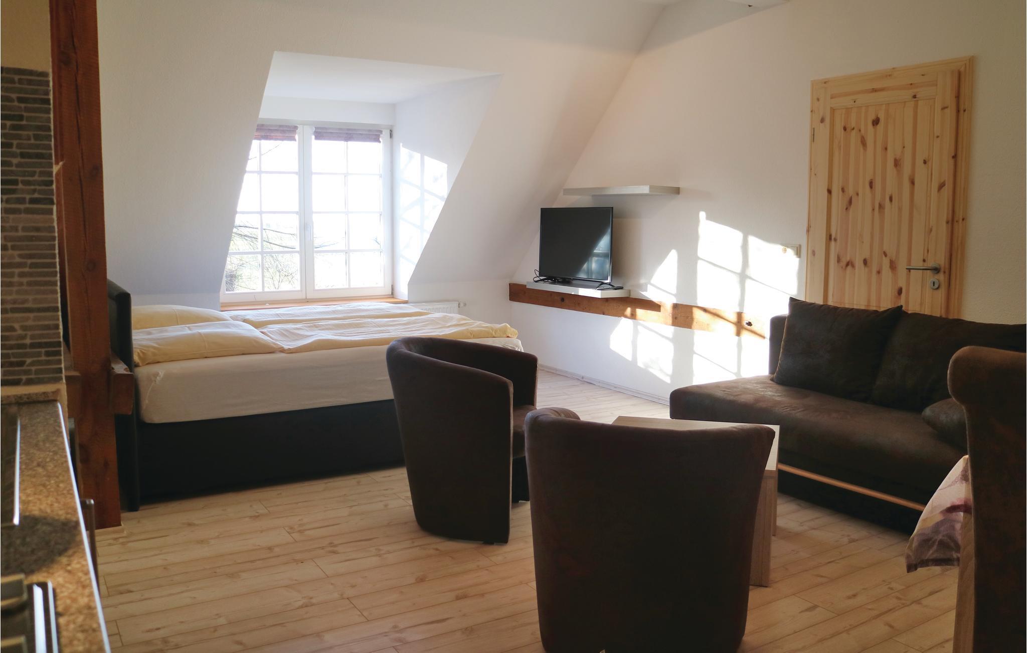 En ferielejlighed i Sagerheide ligger roligt midt i naturen og direkte ved skoven. Her er I omgivet af mark og skov, og kun 1500 m fra badestranden ved Groß Lüsewitzer See og ca. 25 km fra Østersøens kyst. Lejligheden ligger for sig på en 7000 m² stor grund, hvor der også er café i en forhenværende kostald. Her kan I lade jer forkæle med morgenmad og sidde middag eller aften i den velplejede Biergarten, i skyggen af høje, gamle træer og nyde et koldt glas øl eller vin. Til børnene er der en legeplads med sandkasse, vippe og gynge. I må gerne selv grille og runde dagen af ved bålet. I vil værdsætte omgivelsernes utroligt flotte landskab og de mange dyr. Tag cyklen ud i den vide natur som til Graal Müritz ved Østersøen, nærmest kun langs naturveje. Eller opdag Recknitz eller Warnow med kano eller robåd. I kan købe ind 3 km herfra, i Sanitz. Der venter der apoteker, læger og pengeautomater. Ferielejligheden ligger både idyllisk og alligevel centralt, så I herfra kan nå mange udflugtsmål på kort tid. I hansestaden Rostock, kun 8 km herfra, kan I gå ture og købe ind. Nyd de talrige kulturelle muligheder i byen og omgivelserne. I kan udnytte talrige kulturelle muligheder i byen og omgivelserne. Der frister storslåede dagsture til Warnemünde, Kühlungsborn, Stralsund eller til øen Rügen. Selv hvis I kommer med tog, der er 1500 m til stationen, kan I hver time tage toget fra Groß Lüsewitz mod Rostock og Wismar. Der er vaskemaskine og tørretumbler mod gebyr.