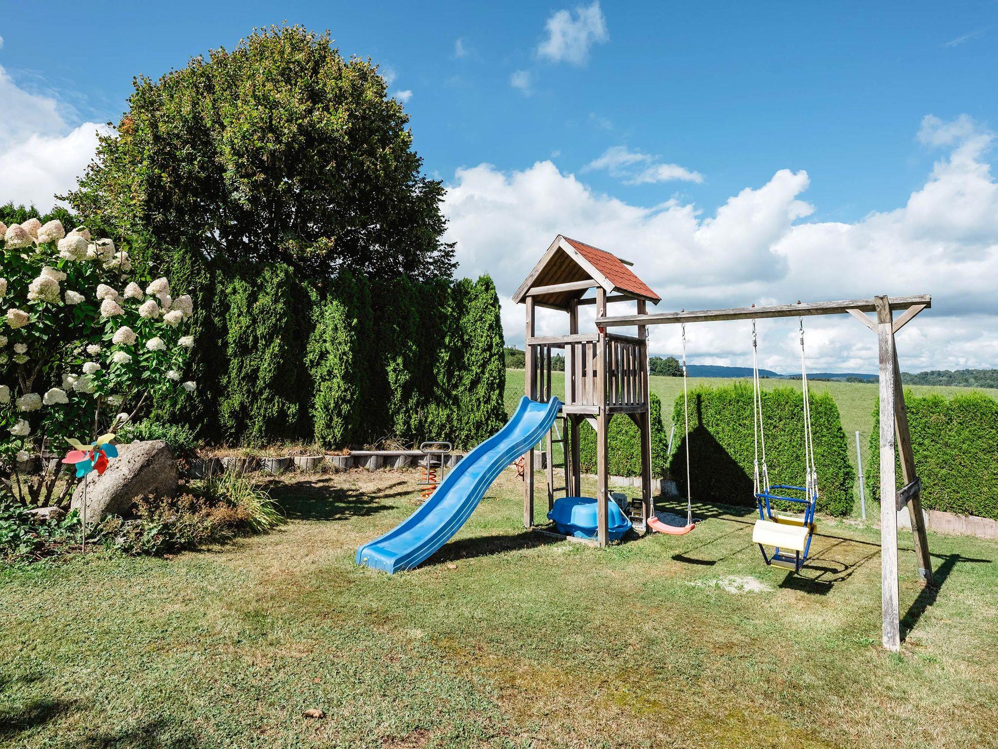 Die Umgebung zeichnet sich durch ihre Familienfreundlichkeit und Ruhe aus, was sie ideal für Wanderungen und Radtouren macht. Eine E-Bike-Ladestation in der abschließbaren Fahrradgarage ist vor Ort verfügbar, um das umliegende Gebiet zu erkunden. Im Garten befindet sich ein Kinderspielplatz, sowie eine Spielscheune auf der Anlage.
