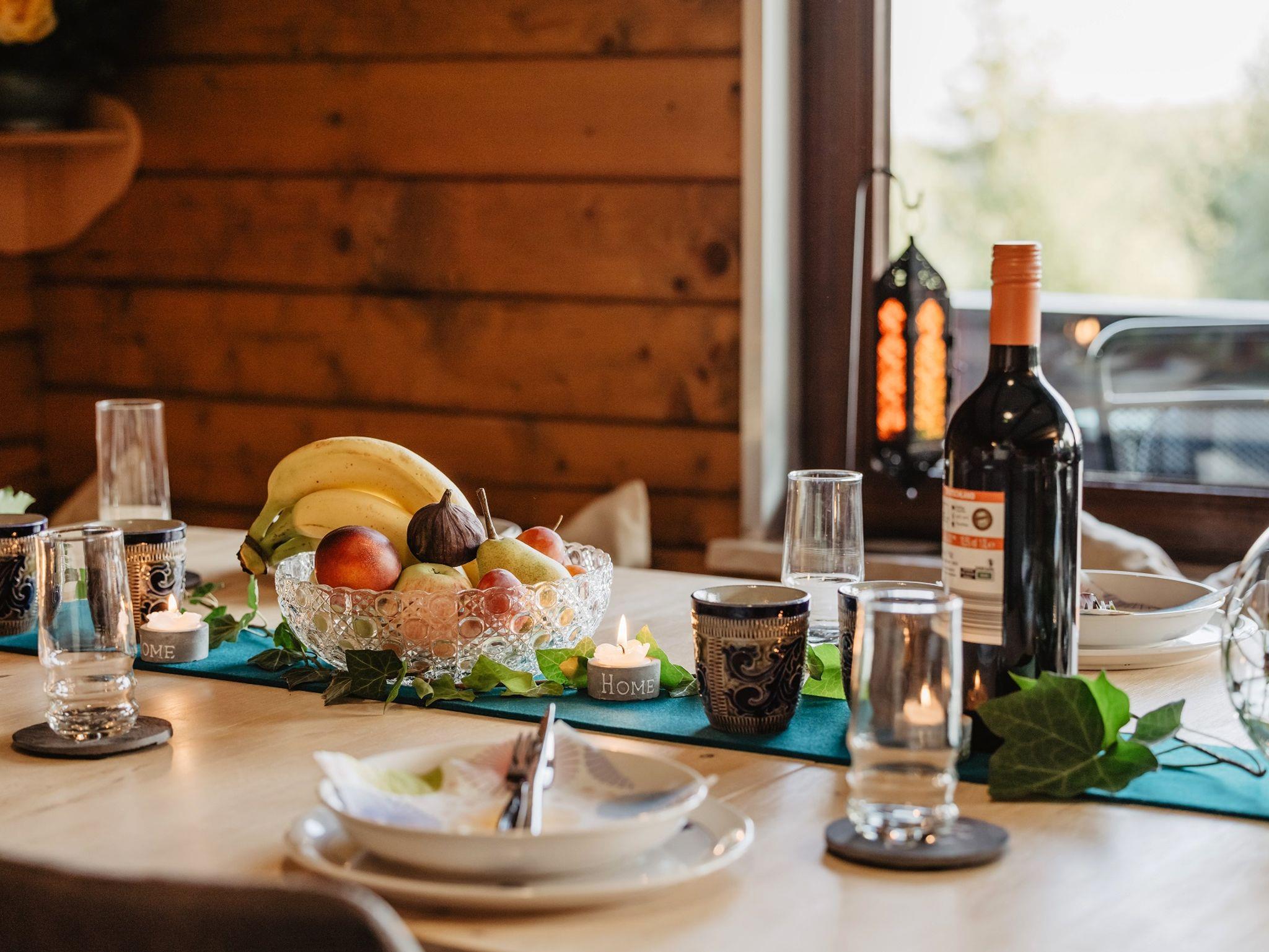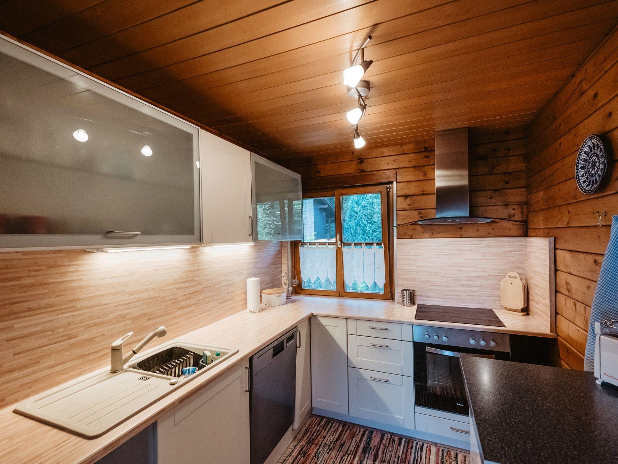 Die Holzbauweise versprüht eine urige und warme Wohlfühlatmosphäre. Selbstversorger schätzen die moderne und voll ausgestattete Küche mit Backofen, Spülmaschine, Kaffeemaschine, Toaster, Wasserkocher und jede Menge Geschirr. Das geräumige Doppelzimmer und ein weiteres Zimmer mit Einzelbett, Ausziehcouch und Zugang zum Matratzenlager, bieten viele Schlafmöglichkeiten auch für Familien mit mehreren Kindern - Bettwäsche inklusive.