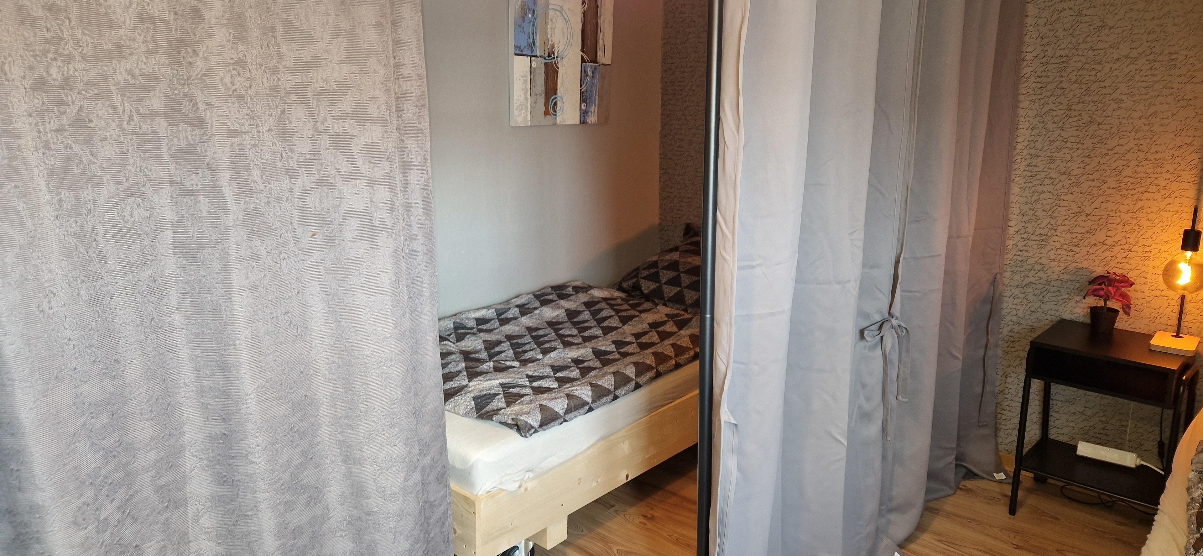 Das kleine Schlafzimmer mit zwei Einzelbetten 0,9m*2m ist ein Durchgangszimmer zum zweiten Schlafzimmer.
