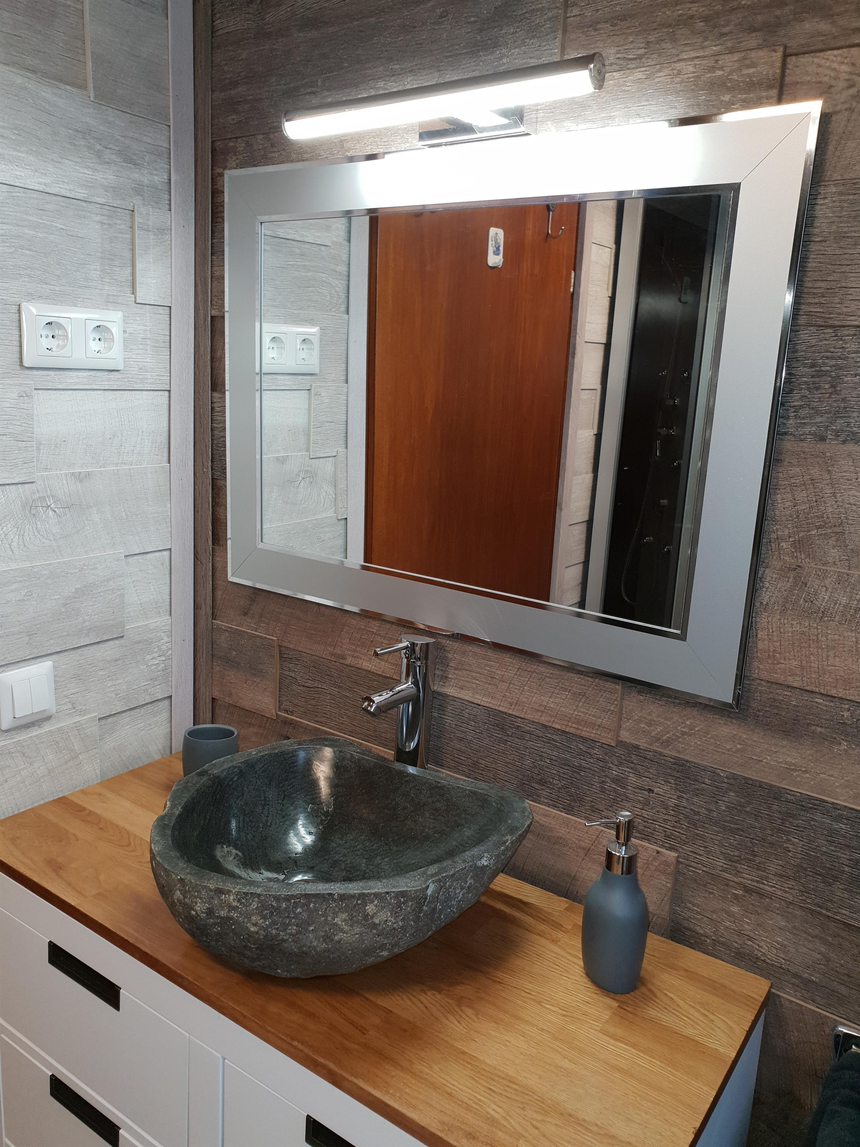 Im Badezimmer befindet sich die Waschmaschine und der Trockner (Die Nutzung der Waschmaschine kostet pro Waschladung 3 Euro extra. Waschmittel wird gestellt. Bitte nur Flüssigwaschmittel benutzen)