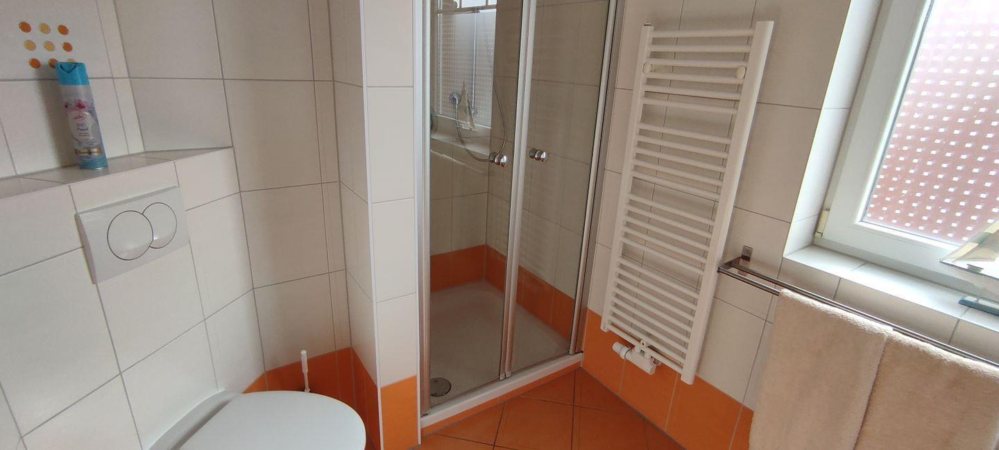 Das Badezimmer mit Fenster bietet Ihnen eine Dusche, einen Waschtisch, eine Waschmaschine und ein WC. Ein weitere Gäste-WC steht Ihnen zusätzlich zur Verfügung.