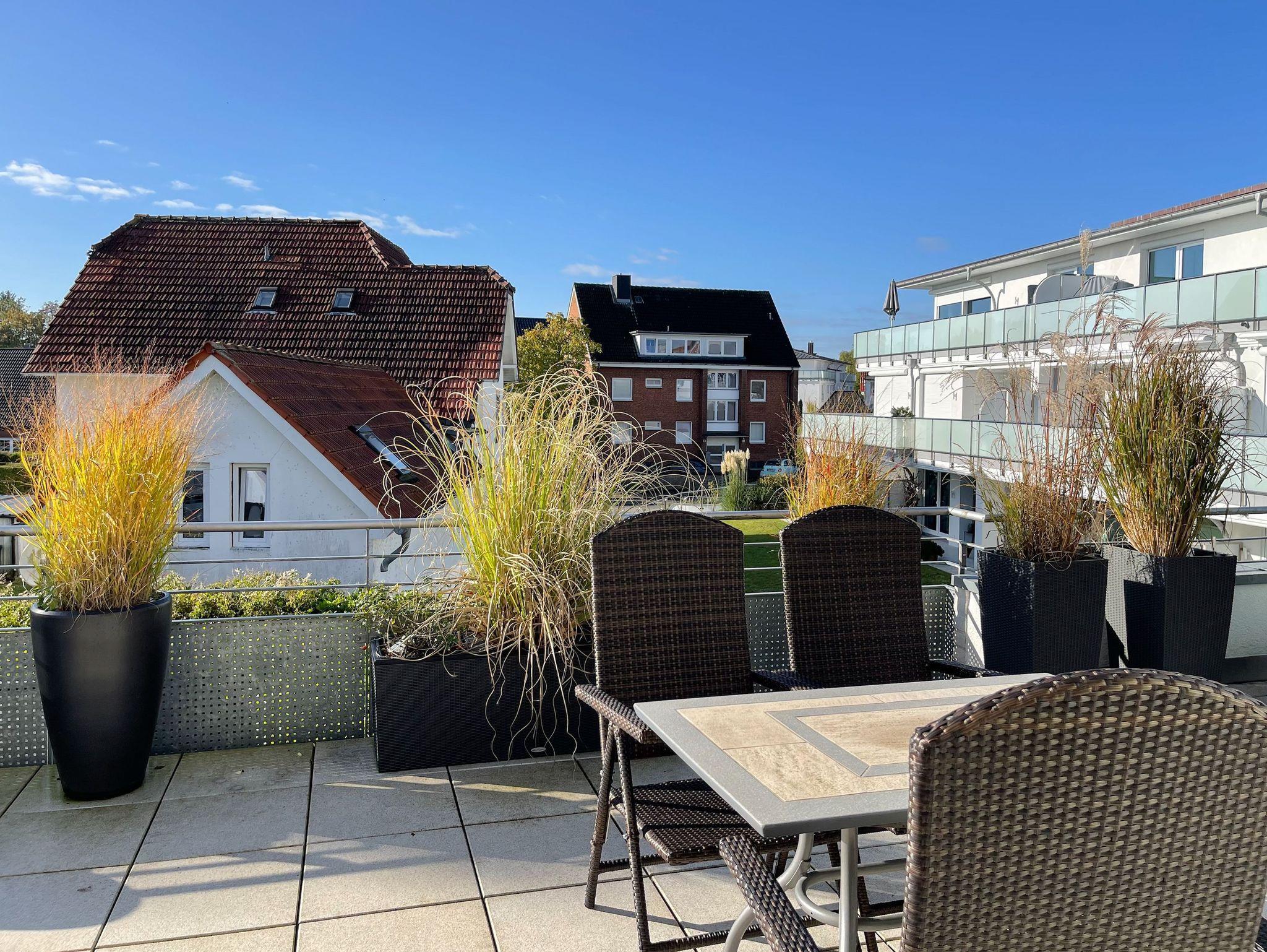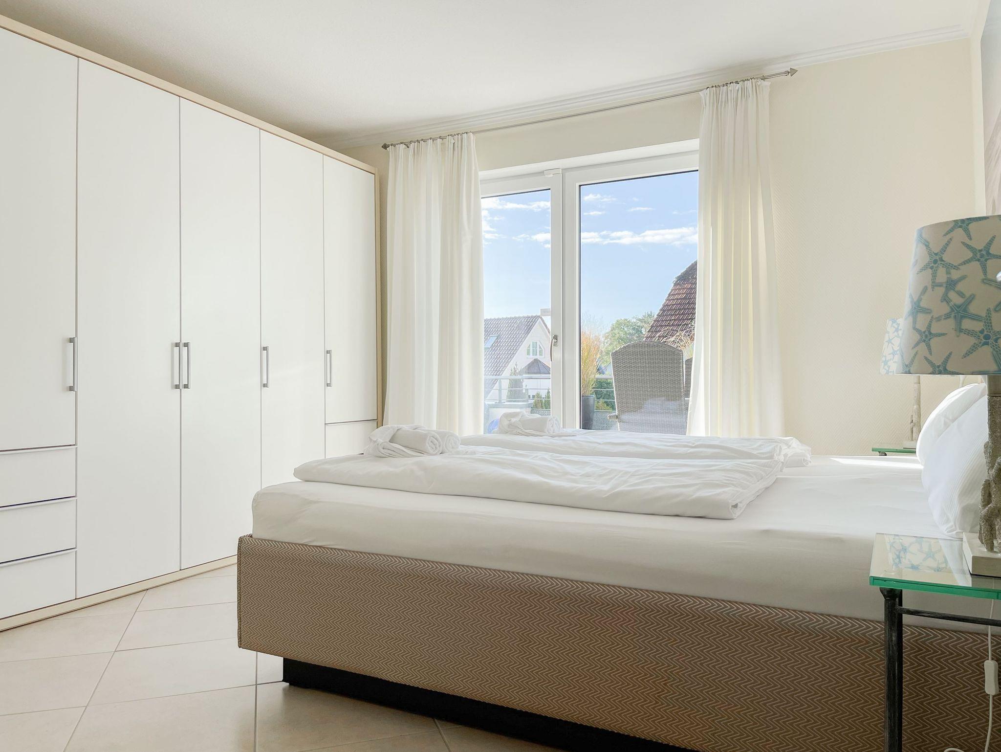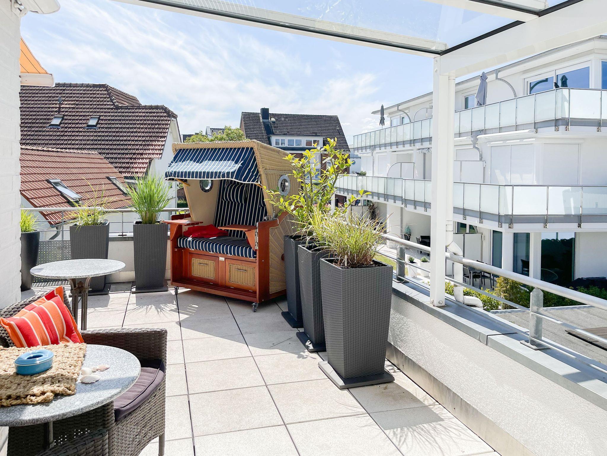Die Oase 16 befindet sich in der 1. Etage, die bequem mit dem Aufzug zu erreichen ist und ausreichend Raum für 4 Personen bietet, um einen erholsamen Ostseeurlaub zu verleben. Die gemütliche, maritime Einrichtung[nbsp] schafft ein herrliches Ambiente zum wohlfühlen und viel Fensterfläche sorgt für lichtdurchflutete Räumlichkeiten. Alle Fenster der Wohnung sind mit elektrischen Außenjalousien versehen. Das absolute Highlight ist die riesige Dachterrasse in Südwestausrichtung für viele gemeinsame Sonnenstunden, die mit einer Essgruppe, Strandkorb und elektrischen Markisen ausgestattet ist. Der Außenbereich ist zum Teil überdacht und sowohl vom Wohnbereich als auch von einem Schlafzimmer zu betreten. Es stehen zwei separate Schlafzimmer zur Verfügung, die mit Doppelbetten (180x200 und 160x200) und Smart TV ausgestattet sind, sowie ein geräumiges Duschbad mit Fußbodenheizung und Handtuchtrockner. Mittelpunkt der Wohnung bildet der maritime Wohnbereich mit integriertem Essbereich und offener Küchenzeile in bester Ausstattung. Der großzügige Eingangsbereich ist hell gefliest und mit einem Einbauschrank ausgestattet und mit Glastüren vom Wohnbereich getrennt. Im an das Hauptschlafzimmer angrenzenden Wirtschaftsraum befinden sich Waschmaschine und Trockner sowie ein separater Gefrierschrank.