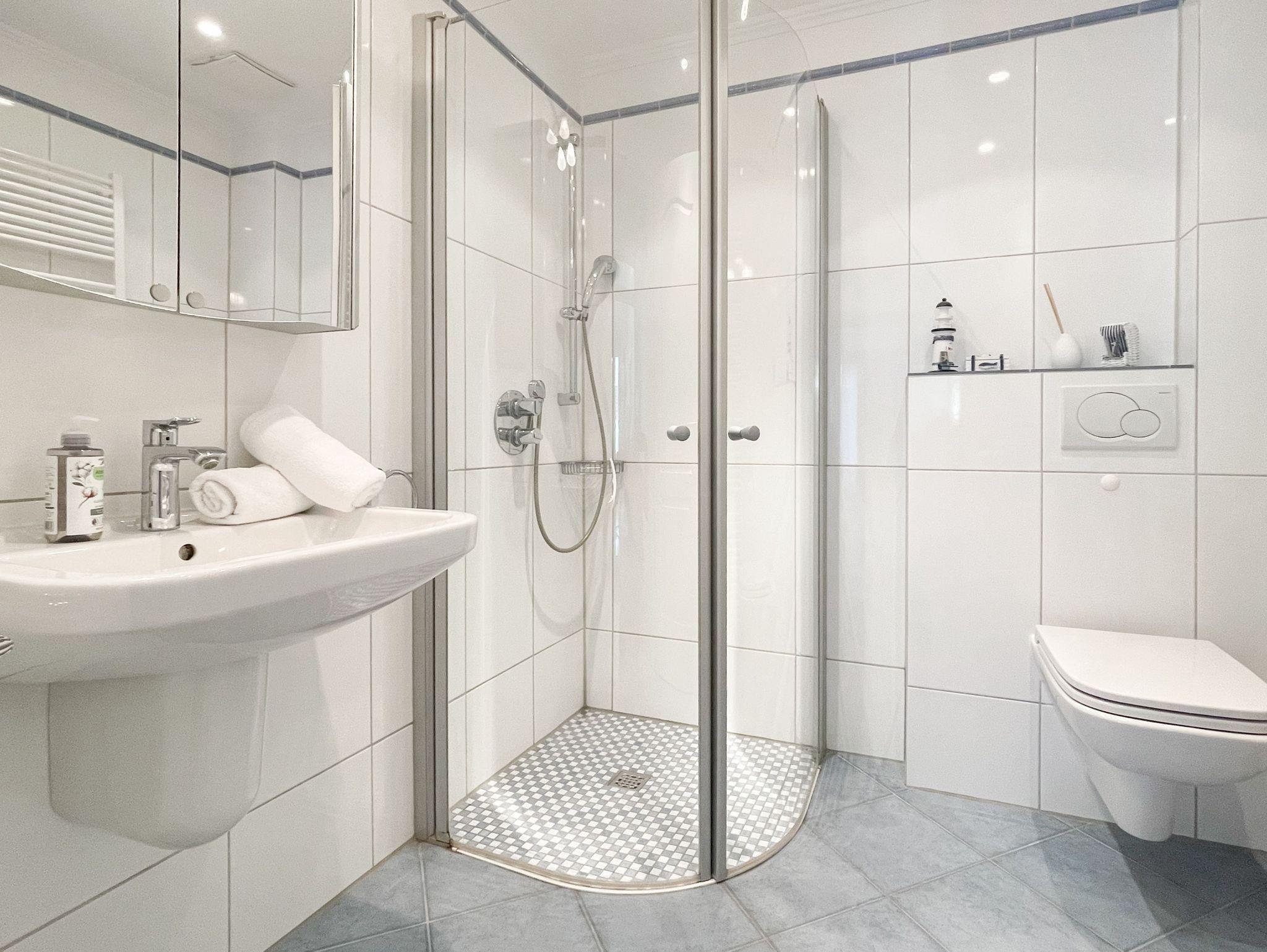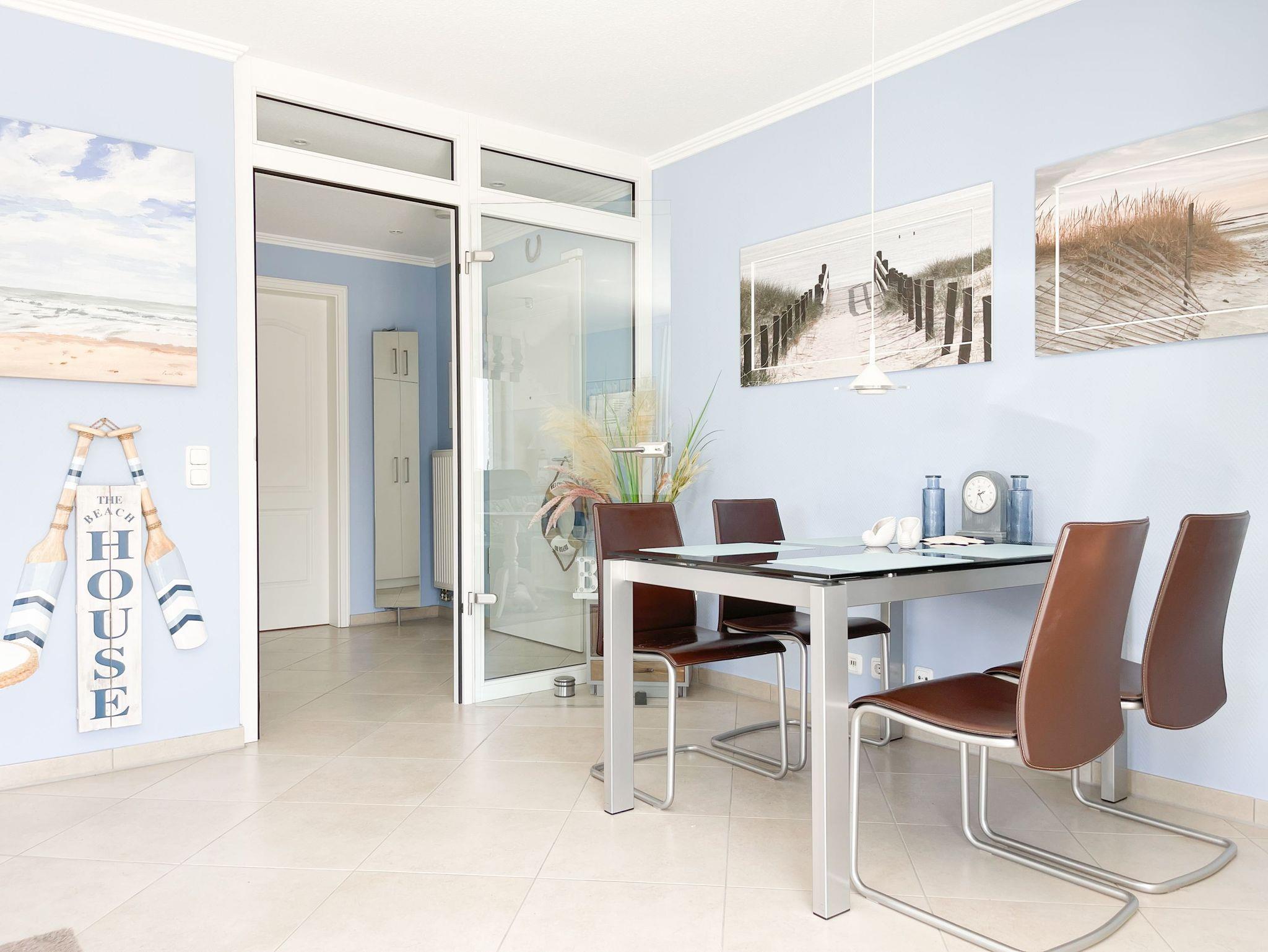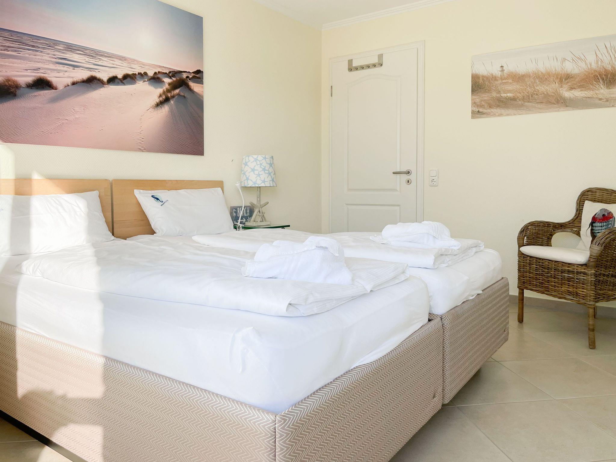 Die Oase 16 befindet sich in der 1. Etage, die bequem mit dem Aufzug zu erreichen ist und ausreichend Raum für 4 Personen bietet, um einen erholsamen Ostseeurlaub zu verleben. Die gemütliche, maritime Einrichtung[nbsp] schafft ein herrliches Ambiente zum wohlfühlen und viel Fensterfläche sorgt für lichtdurchflutete Räumlichkeiten. Alle Fenster der Wohnung sind mit elektrischen Außenjalousien versehen. Das absolute Highlight ist die riesige Dachterrasse in Südwestausrichtung für viele gemeinsame Sonnenstunden, die mit einer Essgruppe, Strandkorb und elektrischen Markisen ausgestattet ist. Der Außenbereich ist zum Teil überdacht und sowohl vom Wohnbereich als auch von einem Schlafzimmer zu betreten. Es stehen zwei separate Schlafzimmer zur Verfügung, die mit Doppelbetten (180x200 und 160x200) und Smart TV ausgestattet sind, sowie ein geräumiges Duschbad mit Fußbodenheizung und Handtuchtrockner. Mittelpunkt der Wohnung bildet der maritime Wohnbereich mit integriertem Essbereich und offener Küchenzeile in bester Ausstattung. Der großzügige Eingangsbereich ist hell gefliest und mit einem Einbauschrank ausgestattet und mit Glastüren vom Wohnbereich getrennt. Im an das Hauptschlafzimmer angrenzenden Wirtschaftsraum befinden sich Waschmaschine und Trockner sowie ein separater Gefrierschrank.