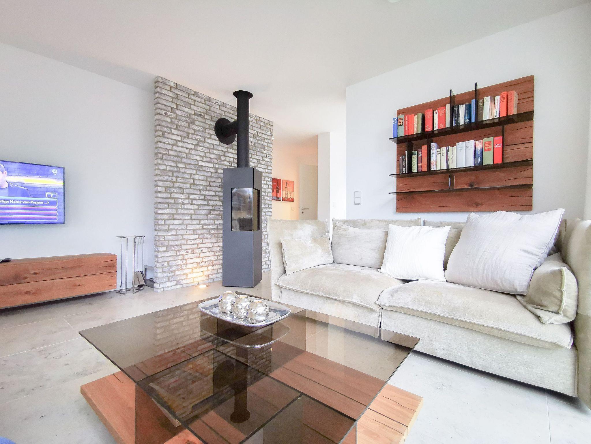 Die Ferienwohnung liegt im 2. Obergeschoss einer neuen Wohnanlage und bietet auf über 100 qm Wohnfläche mit 3 separaten Schlafzimmern, 2 Bädern und einem zusätzlichen Gäste WC hervorragend Platz für bis zu 6 Personen. Die hellen Natursteinfußböden und die geschmackvolle Inneneinrichtung sind äußerst modern und die luxuriöse Zusatzausstattung wie die integrierte Sauna, lässt keine Wünsche offen. Sie möchten ein leckeres Frühstück bei aufgehender Morgensonne genießen? Dann schieben Sie einfach die bodentiefe Glasfront des extravaganten Wintergartens auf und machen diesen zum offenen Balkon. Gartenmöbel und Sonnenliegen stehen selbstverständlich zur Verfügung.