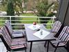 Balkon: 4 Stühle, halb überdacht, Markise, Nord- Westlage, Sichtmöglichkeit vom Balkongeländer seitlich auf die Ostsee, Tisch, Wäscheständer