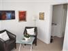 Wohnzimmer: 2 Nachttische, 2 Sessel, Doppelbett 2,00 x 1,60 m, elektrische Aussenrollladen, Flachbildschirm, Sat-TV, Stehlampe, Tisch