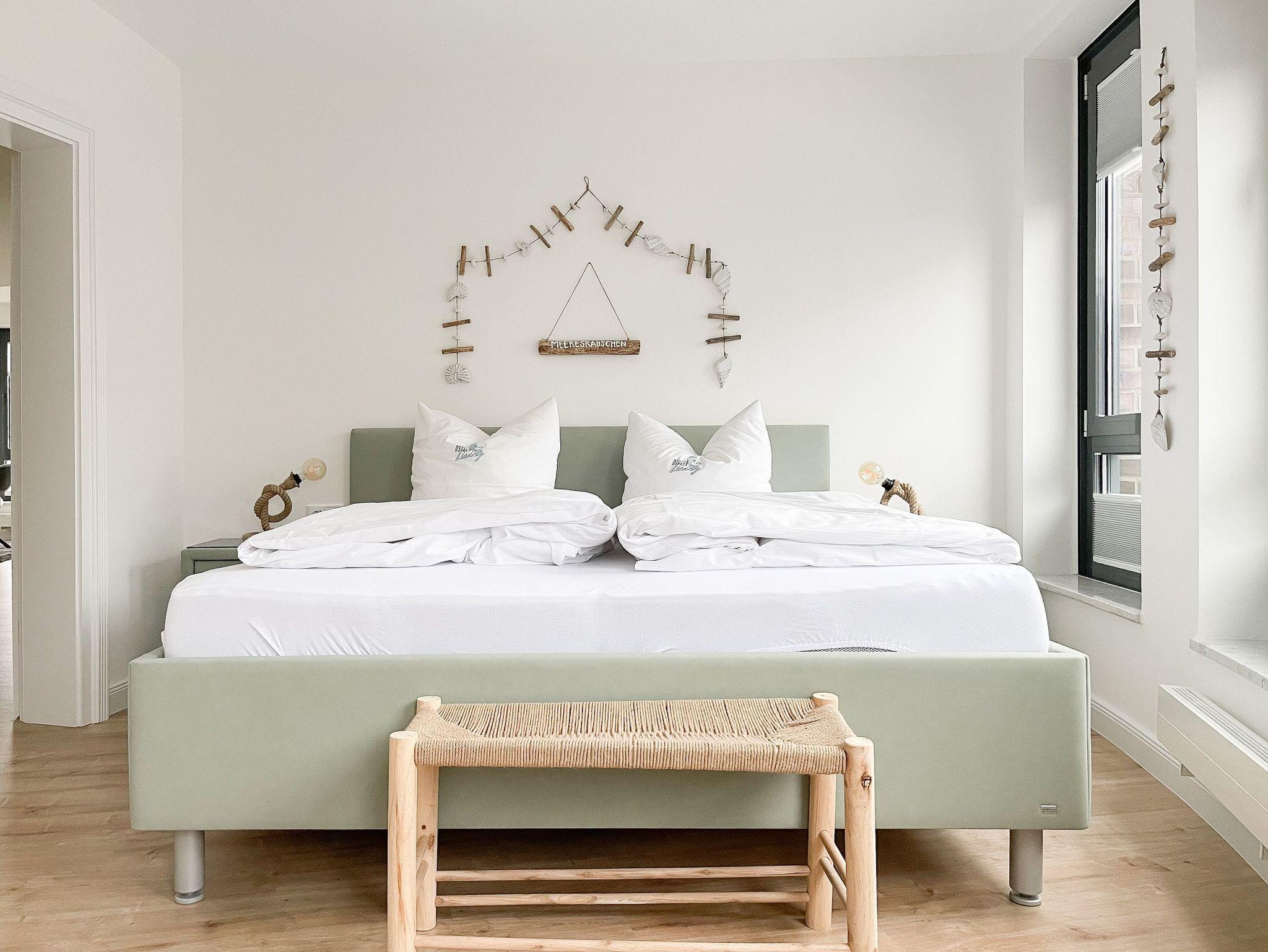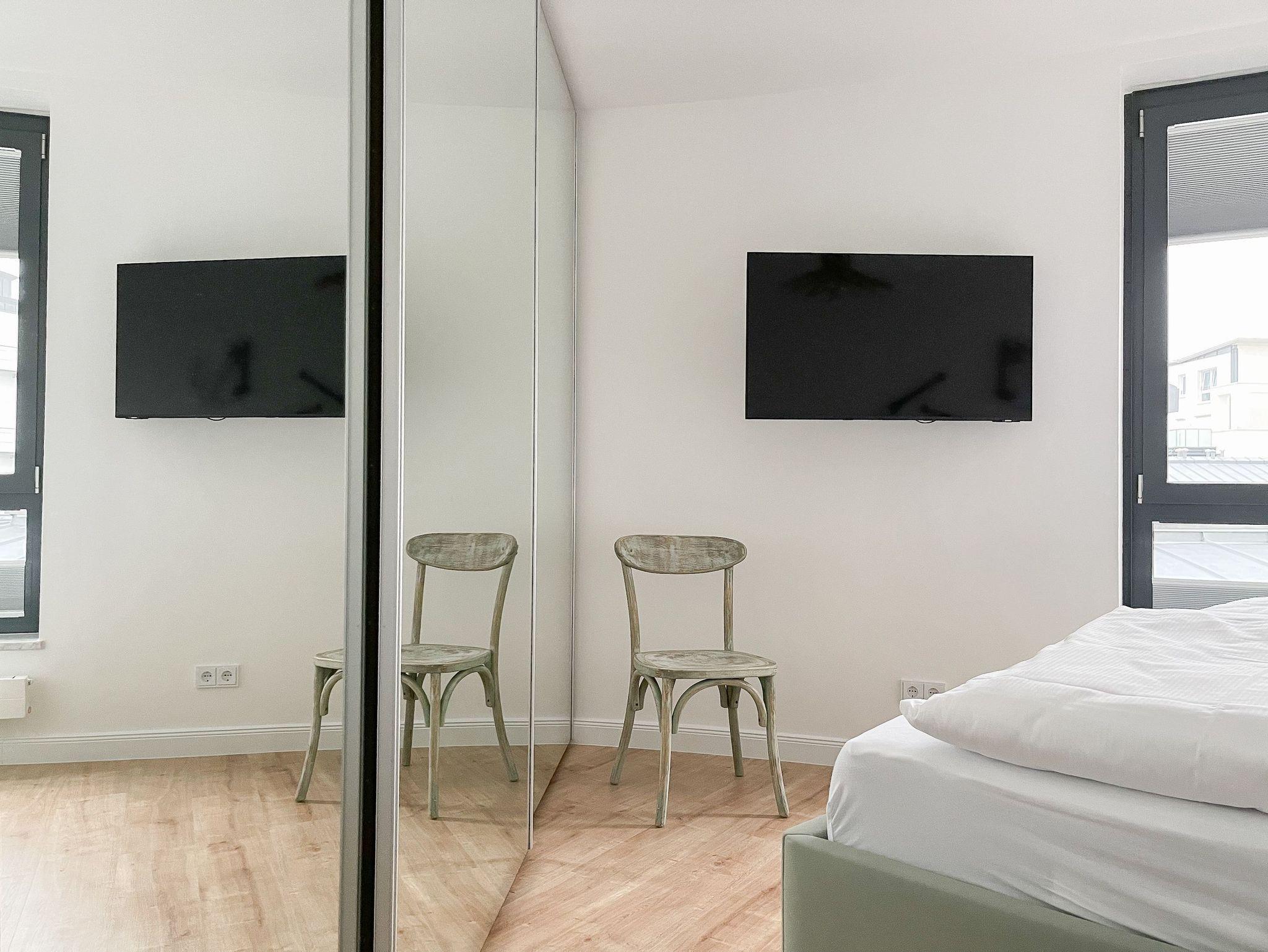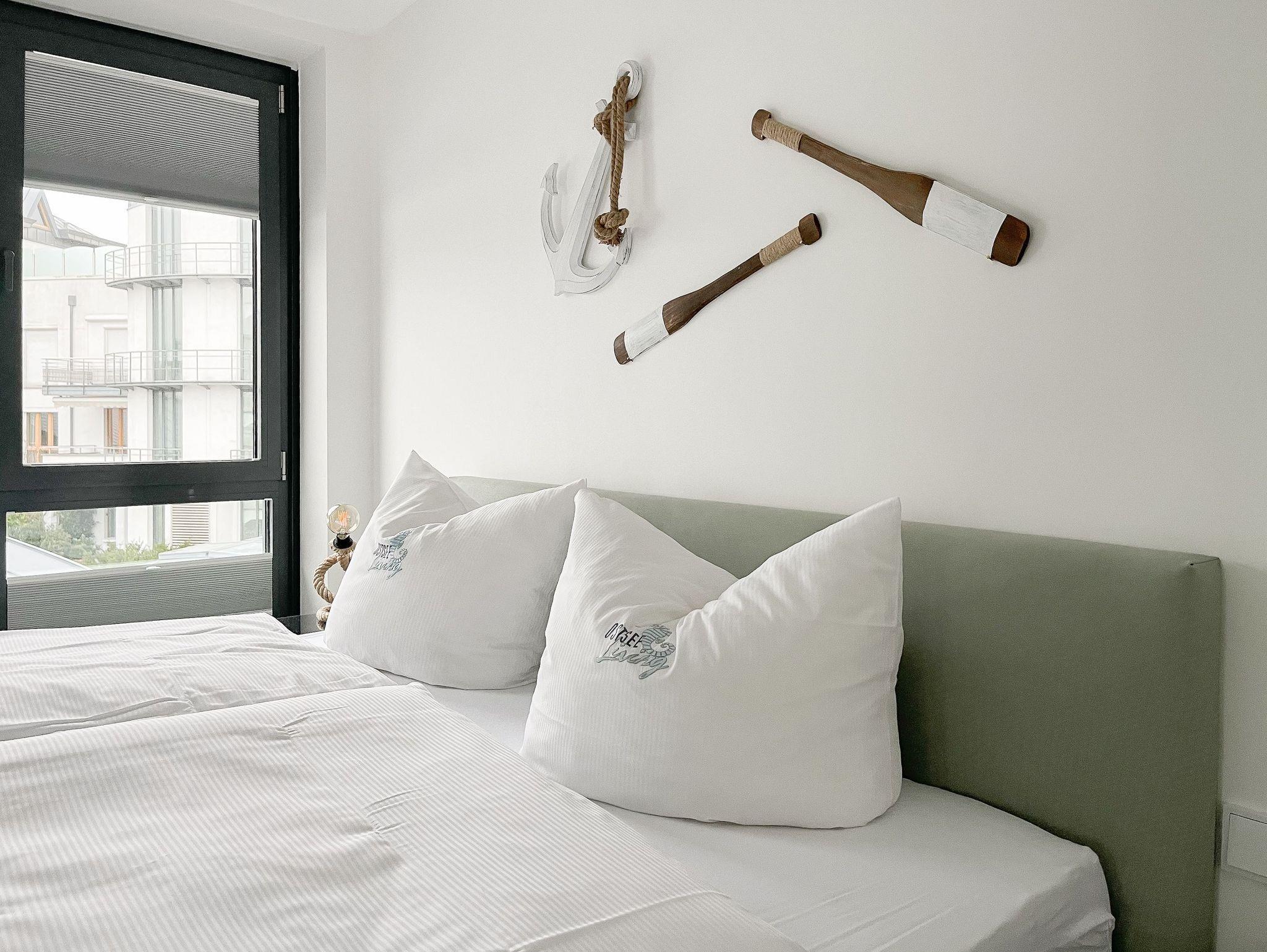 Das Penthouse Leuchtturm Lounge präsentiert sich als lichtdurchflutetes Loft mit unglaublich großzügigen Räumlichkeiten und einer faszinierenden Deckenhöhe über 2 Ebenen im Wohnbereich. Eine Wendeltreppe führt auf die riesige Empore, ein echtes architektonisches Highlight, eingerichtet mit einem traumhaften Schlafzimmer mit Klimaanlage und TV, einem Büro und kleinem exklusiven Duschbad ensuite. Ein weiteres Highlight ist definitiv die riesige Dachterrasse in Südausrichtung für viele gemeinsame Sonnenstunden, die mit einer Essgruppe und XXL Strandkorb ausgestattet ist. Im überaus weitläufigen Wohn- Essbereich mit anschließender Wohnküche in top Ausstattung, spielt sich das Leben ab. Die gemütliche Sofalandschaft und der großzügige Essbereich bieten viel Raum, um einen entspannten Urlaub zu verleben. Durch die Kombination von anspruchsvollem Design, hochwertigen Materialien und warmen Farben ist es der Innenarchitektin gelungen, eine wunderbare Wohnatmosphäre zu schaffen. Es gibt 2 weitere großzügige Schlafzimmer, die[nbsp] wie auch das Emporenschlafzimmer über hochwertige Ruf[nbsp] Boxspringbetten (180x200), Einbauschränke, TV und Verdunkelungsplissees verfügen sowie ein weiteres exklusives Duschbad. Beide Bäder sind mit einem Radio ausgestattet. Eine Waschmaschine ist in die Küche integriert. Zum Penthouse (2. Etage) gehört ein reservierter Stellplatz in der Tiefgarage ( Einfahrtshöhe 1,90 m ). Ein Fahrstuhl ist nicht vorhanden. Das Penthouse ist aufgrund der offenen Treppe und Empore nicht unbedingt für Kleinkinder geeignet.