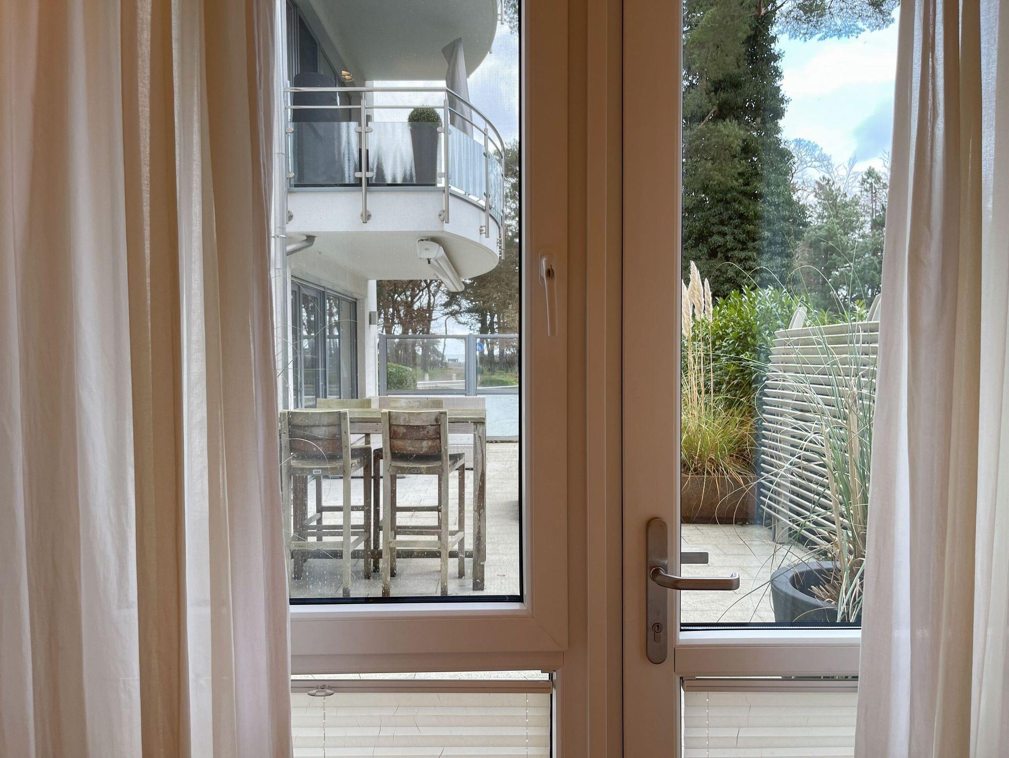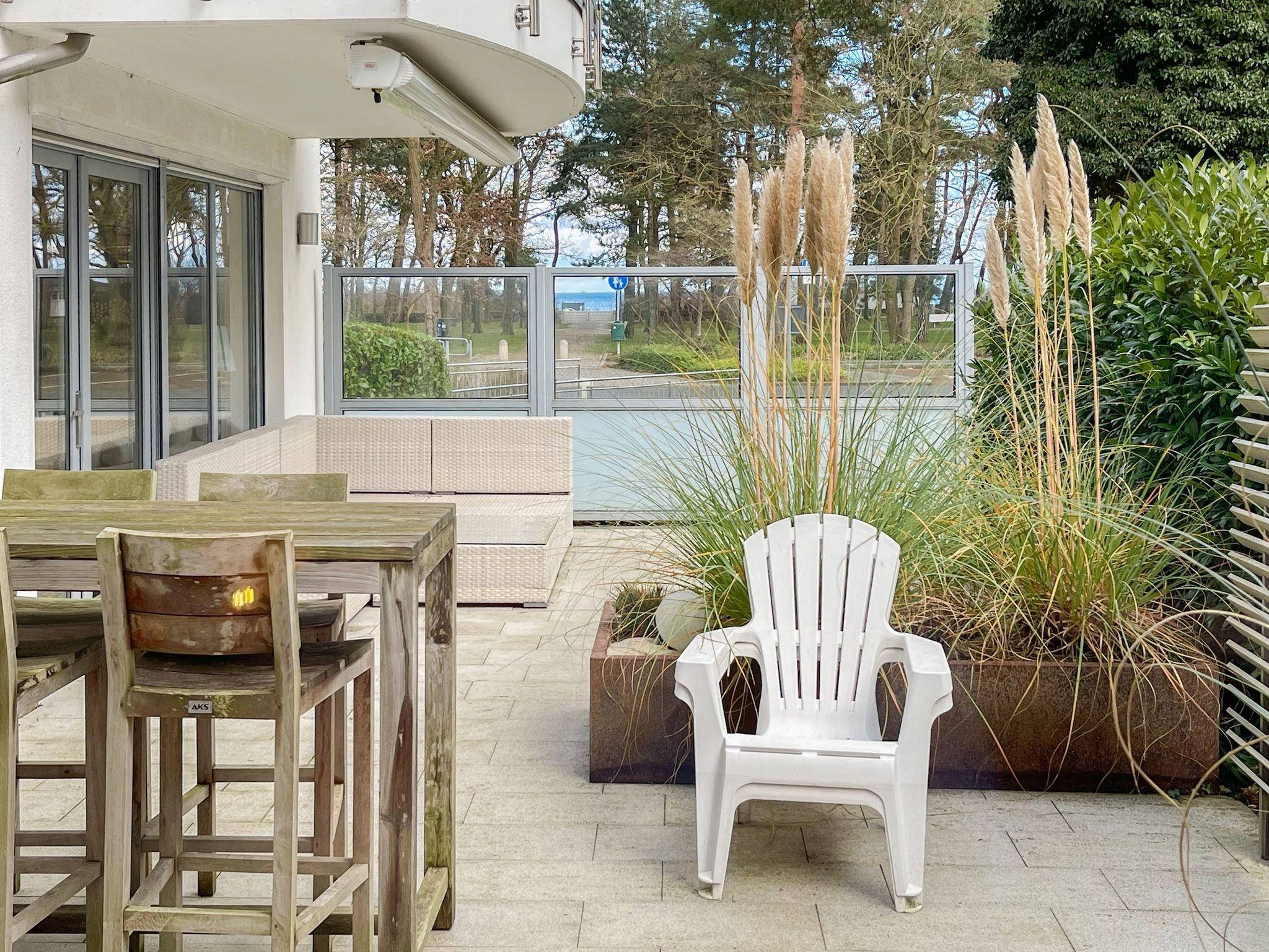 Ein absolutes Highlight dieser Wohnung ist die große Terrasse in Südost-Ausrichtung mit gemütlichen Loungemöbeln, Markise und Blick bis auf die Ostsee. Die Terrassentür lässt sich mit dem Hausschlüssel öffnen und dient als privater Eingangsbereich, sodass Sie direkt über die eigene Terrasse und durch den Garten mit wenigen Schritten am Strand sind. Die Ferienwohnung ist äußerst großzügig geschnitten, gut ausgestattet und geschmackvoll eingerichtet, sodass ein hoher Wohnstandard in einem schönen Ambiente gewährleistet ist. Bodentiefe Fenster sorgen für helle und sonnige Räumlichkeiten und ermöglichen einen schönen Blick bis auf die Ostsee. Alle Fenster sind mit elektrischen Außenjalousien versehen und die Fußbodenheizung sorgt für ein angenehmes Raumklima. Es erwartet Sie ein großzügiger Wohnbereich, eingerichtet mit einem gemütlichen Sofa, TV, WLAN und Sonos Anlage. Die offene Luxusküche mit Insel und angrenzendem Essbereich ist bestens ausgestattet und macht Lust auf gemeinsames Kochen.[nbsp] Es stehen zwei separate Schlafzimmer mit Doppelbetten (180x200) und TV zur Verfügung.[nbsp] Das Bad ist sehr hochwertig mit Walk IN Dusche und integrierter Waschmaschine und Trockner. Ein separates Gäste WC ist ebenfalls vorhanden. Das Haus am Meer verfügt über einen Fahrstuhl und eine Tiefgarage (Einfahrtshöhe 2 m), in der ein fester Stellplatz reserviert ist. Ein Fahrradkeller ist vorhanden.