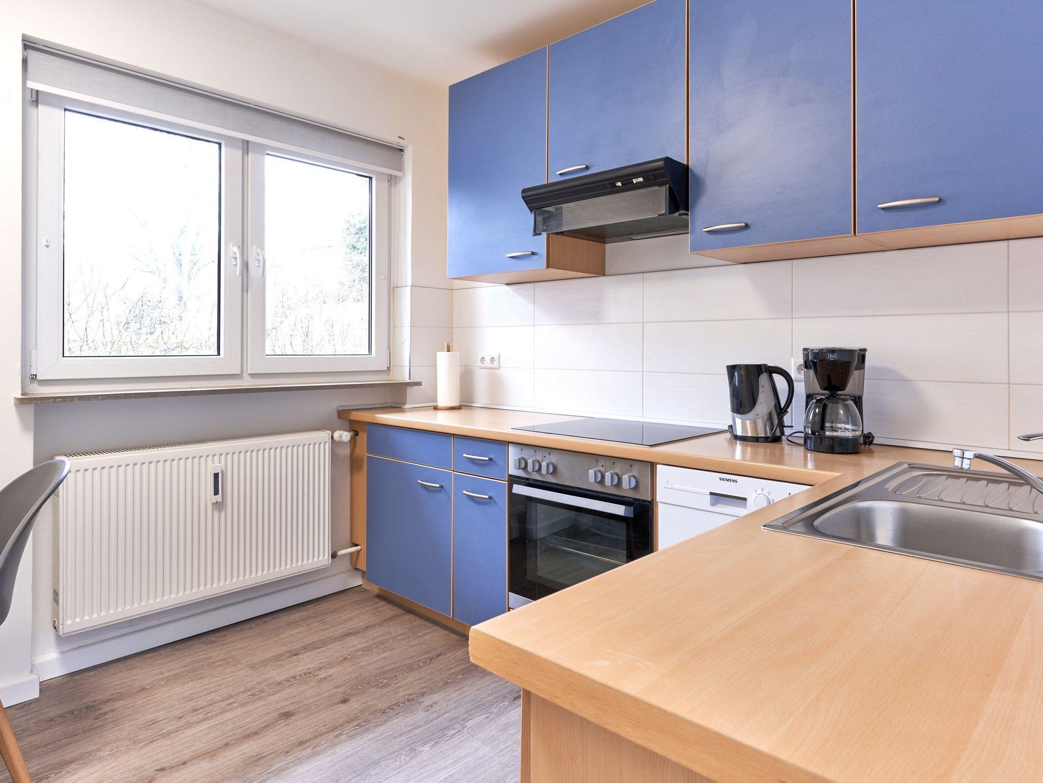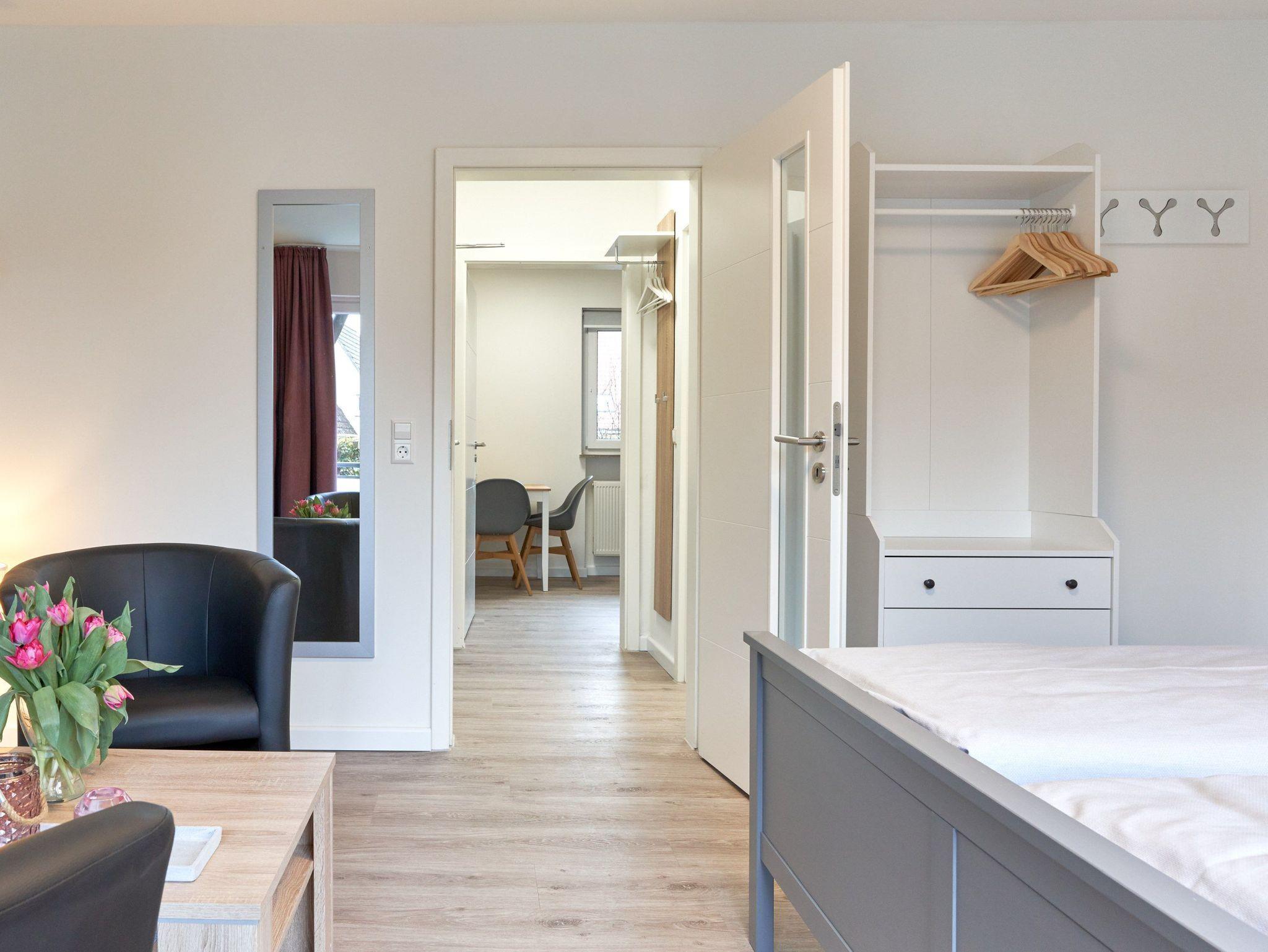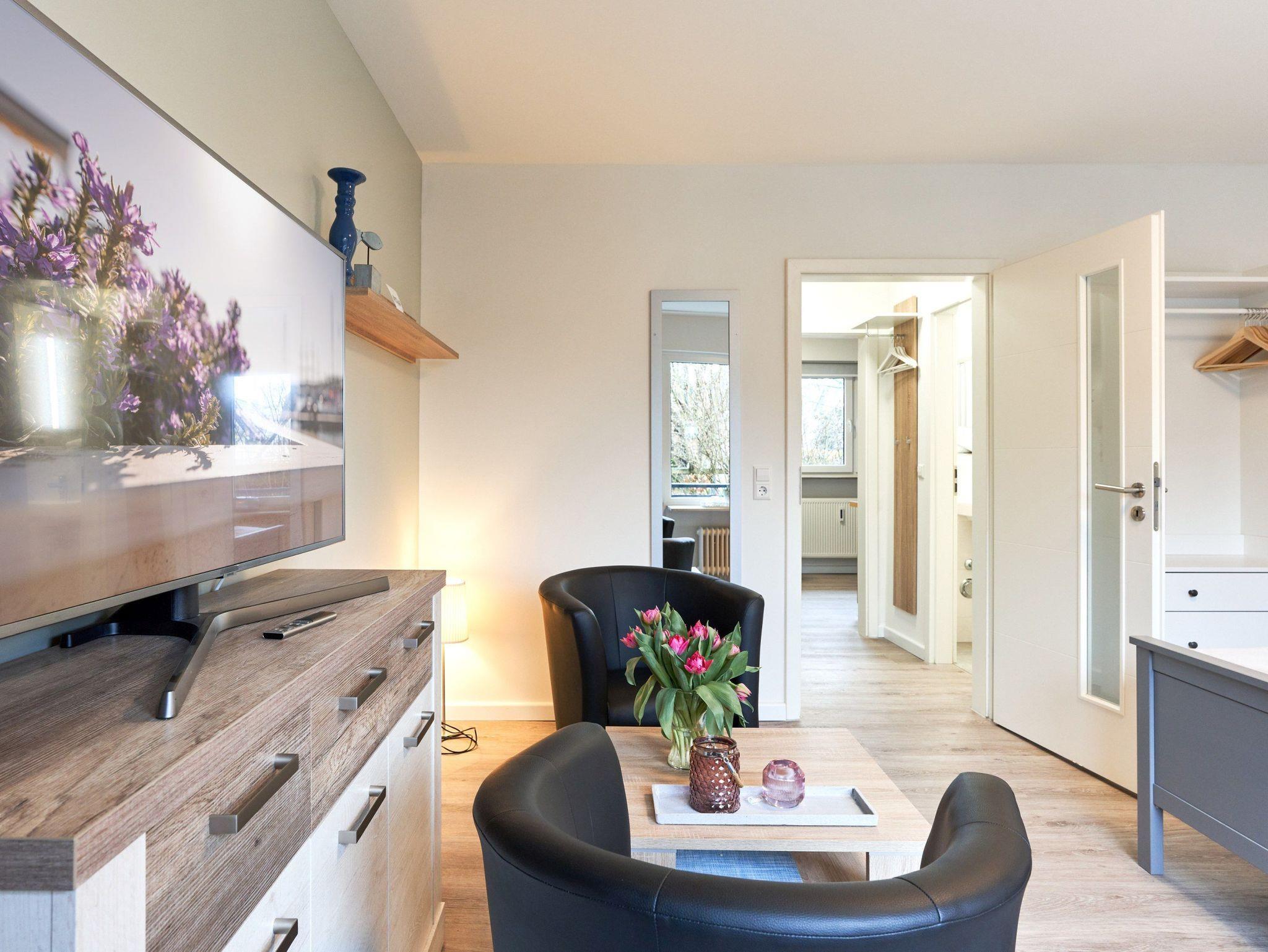 Dieses, in 2022 umfassend renovierte Apartment bietet ein Wohn-/Schlafzimmer, Küche, Bad und einen möblierten Balkon. Die Einbauküche ist komplett ausgestattet und mit Essplatz, neuer Filter-Kaffeemaschine und Geschirrspüler ausgestattet. Im neu gestalteten, kleinen aber feinen Badezimmer finden Sie eine Echtglasdusche, neue Badobjekte sowie einen Badheizkörper für Handtücher. Der neue und modern gestaltete Wohnbereich ist mit großen Fenstern, Doppelbett, ausreichend Stauraum und Fachbildschirmfernseher eingerichtet. Verdunkelungsgardinen sorgen für eine gemütliche Atmosphäre und ungestörten Schlaf.