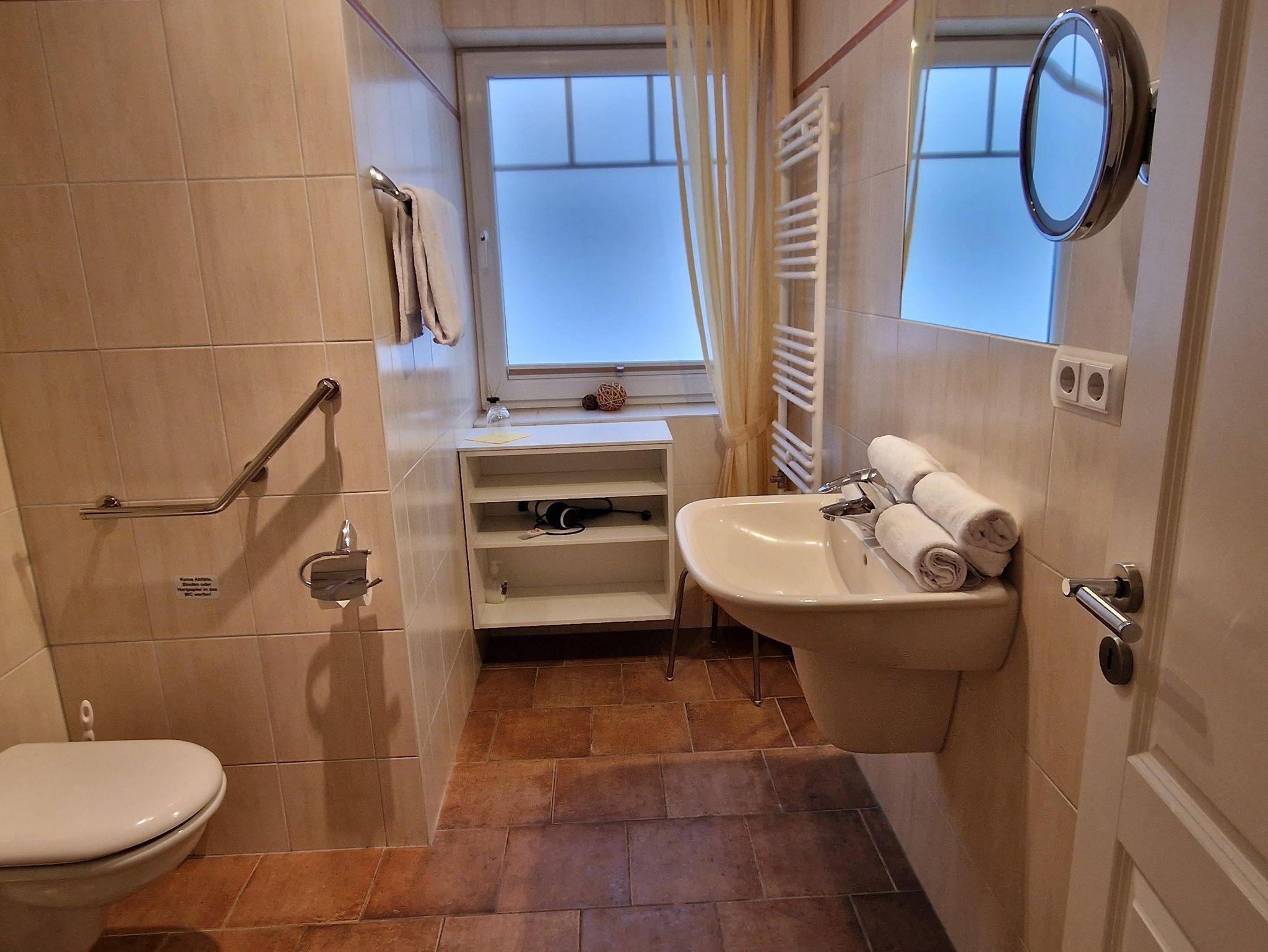 Die Wohnung befindet sich im Erdgeschoss am Kurpark, Kurparkstr. 7, optimale Appartment-Aufteilung ca.44m². Sie ist neuwertig, voll möbliert und mit allem Komfort wie zwei Fernseher mit Radio u. Musiksender versehen. Wohn- und Essbereich mit Ausgang auf die abgeschlossene möblierte Süd-West Sonnenterrasse mit Strandkorb u. Markiese, Schlafzimmer, Flur, Duschbad, Einbauküche im Wohnbereich (Geschirrspüler, Backofen, Ceranfeld, Gefrierfach, Mikrowelle usw.) Alle Räume Terrakottafliesen, moderne Einrichtung, TV-Überwachung, Kabel-TV, Wlan, Aufzug, Fahrradabstellplatz. Im Haus befindet sich ein Sauna-Wellnessbereich, sowie Waschmaschine und Trockner. Unsere Preise variieren, je nach Saison, zzgl. Endreinigung, zubuchbar Wäschepaket Parkplatz Hund. Diese Ferienwohnung ist für 2 Personen, modern und mediterran, eingerichtet.
