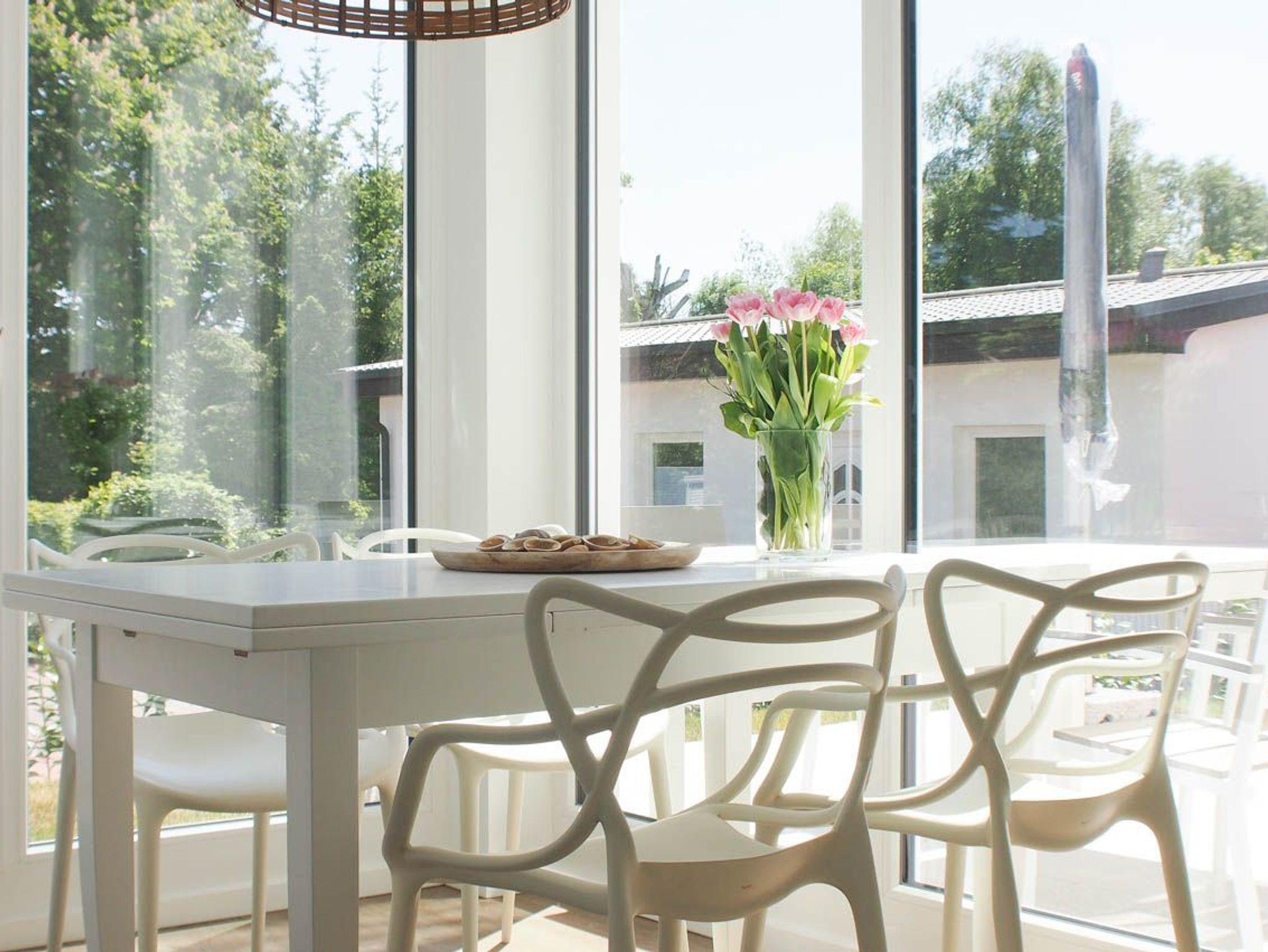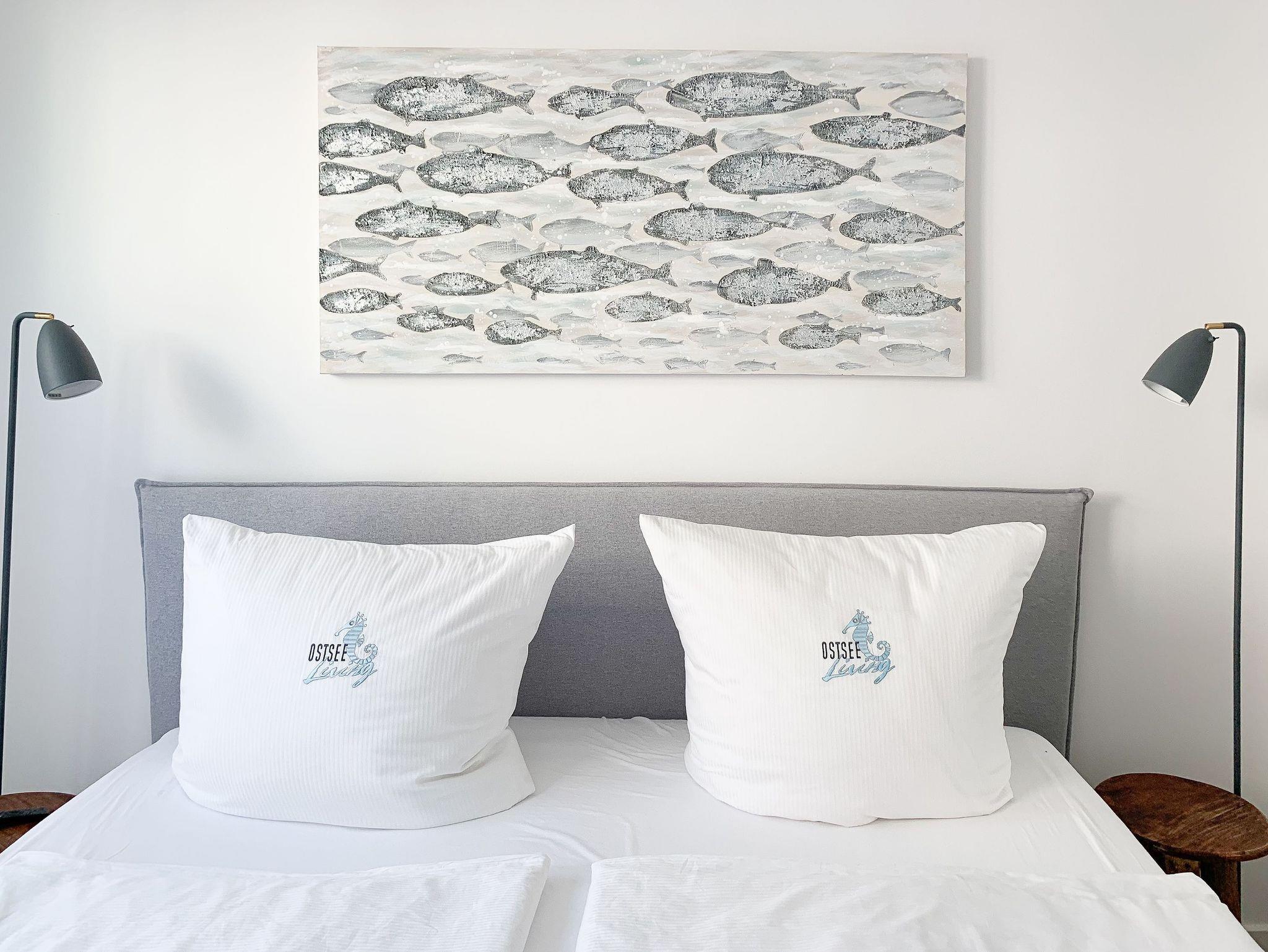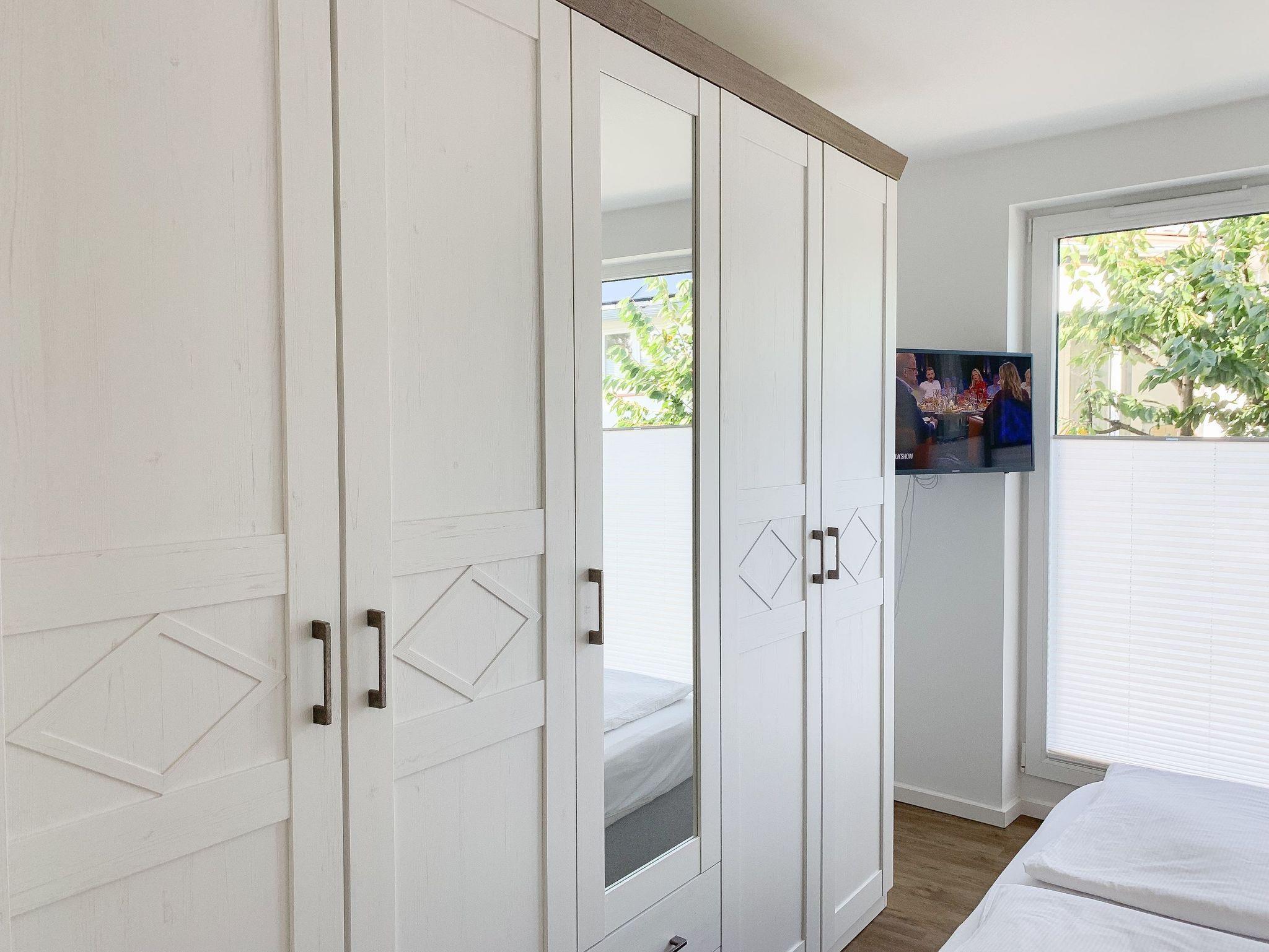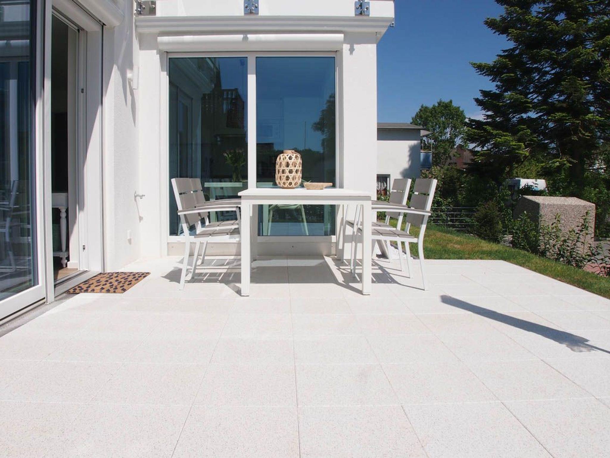 Die Ferienwohnung ist hochwertig ausgestattet und geschmackvoll eingerichtet. Bodentiefe Fensterflächen sorgen für einen lichtdurchfluteten Wohnbereich mit einem gemütlichen Sofa, Sessel und TV. Die vorgelagerte Sonnenterrasse ist ein wunderbarer Platz, um entspannte Urlaubstage zu genießen. Die offene Einbauküche mit angrenzendem Essbereich ist bestens mit allen technischen Geräten ausgestattet, um höchsten Ansprüchen zu genügen. Es stehen zwei separate Schlafzimmer zur Verfügung, die beide mit Boxspringbetten (180x200 und 160x200), Kleiderschrank und TV ausgestattet sind. Das hochwertige Duschbad mit integrierter Waschmaschine und integriertem Trockner ist großzügig angelegt und bietet reichlich Tageslicht. Die gesamte Wohnung ist mit elektrischen Außenjalousien versehen und verfügt über eine Fußbodenheizung für ein angenehmes Raumklima.