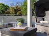 Sie schlafen in traumhaften Boxspringbetten – und für den entspannten Luxus tagsüber stehen, neben der großen Terasse, zwei stilvolle Sofas und ein gemütlicher Esstisch zur Verfügung.