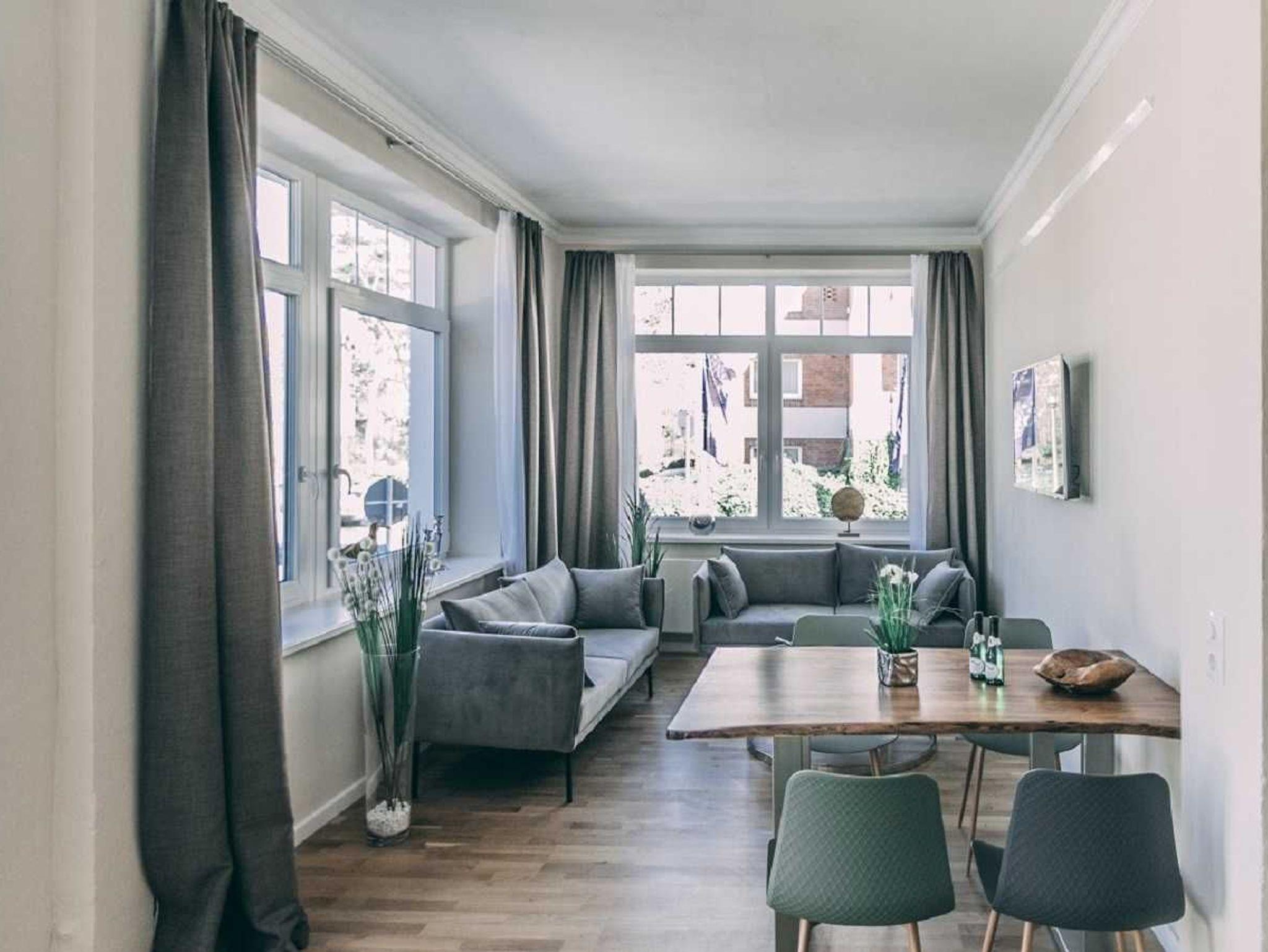 Unsere Super-Suite Wellenkamm im Erdgeschoss mit zwei separaten Zimmern, Flur, Küche und Bad – natürlich mit direktem Zugang zu der großzügigen und gemütlich möblierten Terasse.