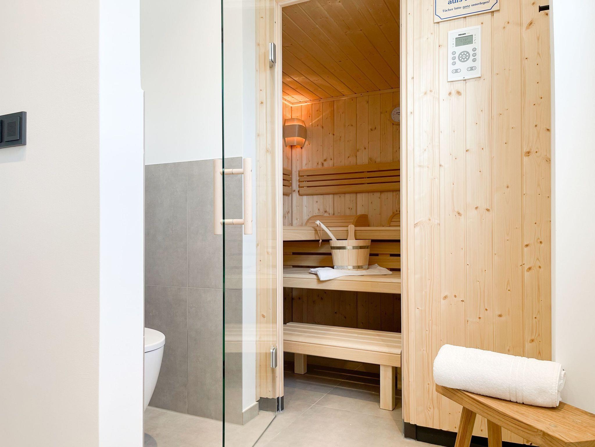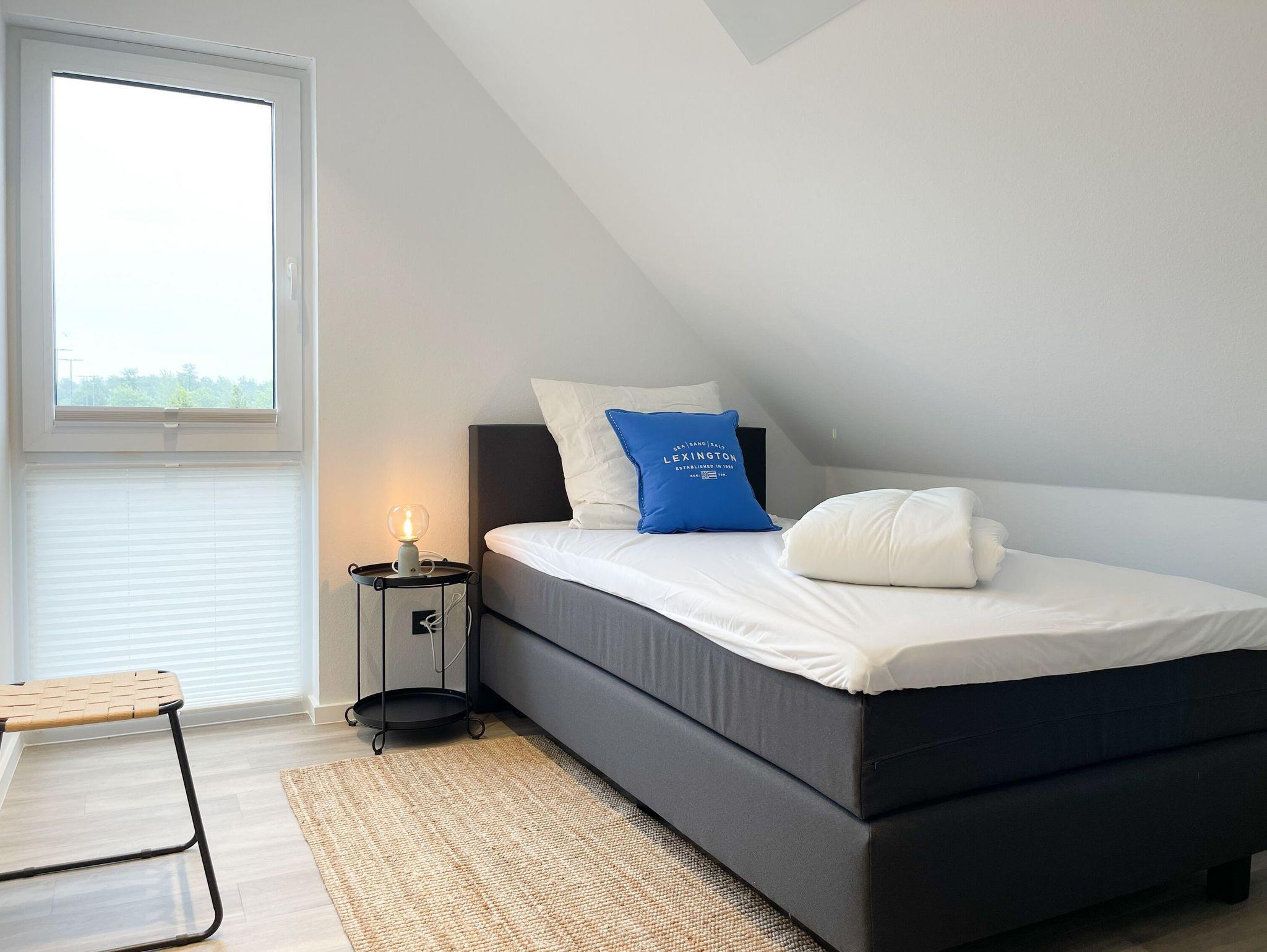 Es erwartet Sie eine wunderschönes Ferienhaus im skandinavischen Stil. Sonnige Räumlichkeiten und die äußerst hochwertige Einrichtung garantieren einen hohen Wohnstandard in einem schönen Ambiente. Mit 4 Schlafzimmern, einem exklusiven Bad mit Walk In Dusche, Radio und Sauna sowie einem zusätzlichen Gäste WC, bietet das Hygge Hus auf über 100 qm Wohnfläche ausreichend Raum für 6 Personen, um einen erholsamen Ostseeurlaub in Strandnähe zu verleben. Im Erdgeschoss erwartet Sie ein lichtdurchfluteter Wohn- Essbereich, großzügig geschnitten und hochwertig möbliert. Die integrierte Einbauküche in perfekter Ausstattung eignet sich hervorragend für gemeinsames Kochen. Die vorgelagerte Terrasse in Südwestausrichtung ist mit Gartenmöbeln und einem Strandkorb ausgestattet. Im Eingangsbereich befindet sich die Garderobe und ein modernes Gäste WC mit Fenster. Im Obergeschoss gibt es zwei separate Schlafzimmer mit Boxspringbetten (180x200 und 140x200), TV und Kleiderschrank. Das hochwertige Wellnessbad mit großzügiger Walk-In Dusche und integrierter Sauna befindet sich ebenfalls im Obergeschoss. Die Schlafzimmer 3 und 4 befinden sich im Dachgeschoss und sind jeweils mit Boxspringbetten (120x200) und Kommode eingerichtet. Alle Fenster sind mit elektrischen Außenjalousien versehren, außer[nbsp] 1 Schlafzimmer im Dachgeschoss, das mit Verdunkelungsplissees ausgestattet ist. Waschmaschine und Trockner sind im separaten Technikraum neben der Terrasse untergebracht.