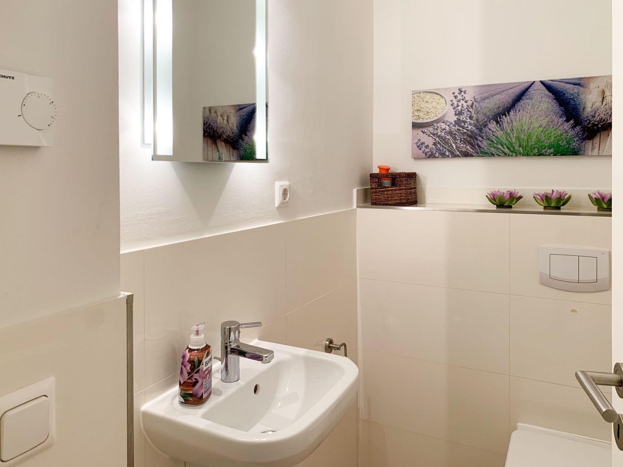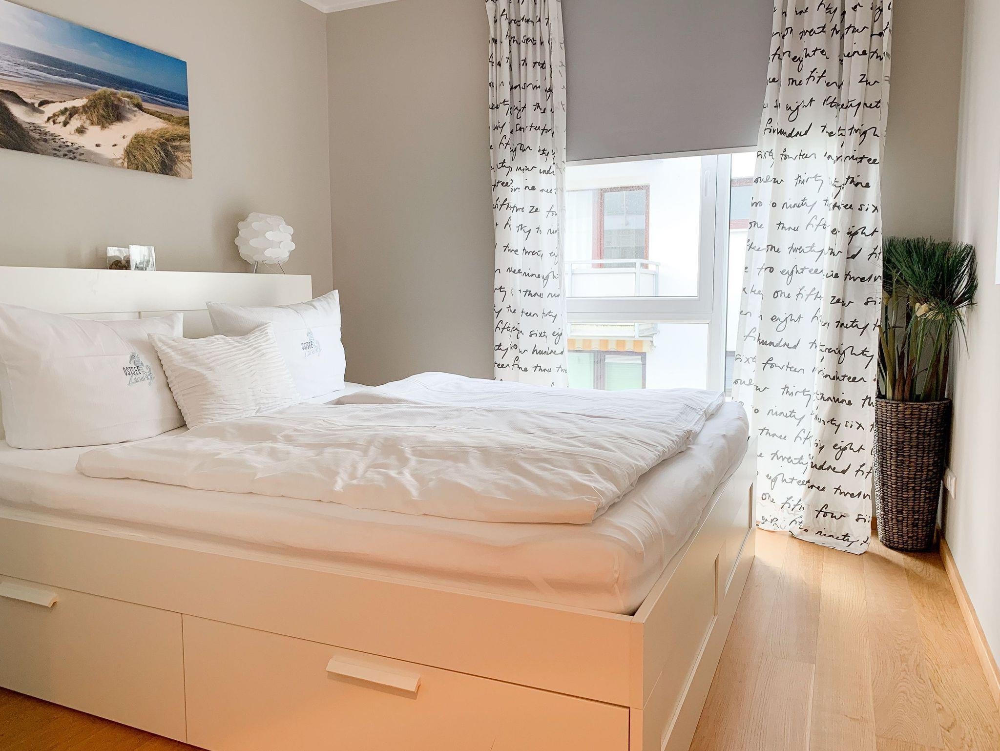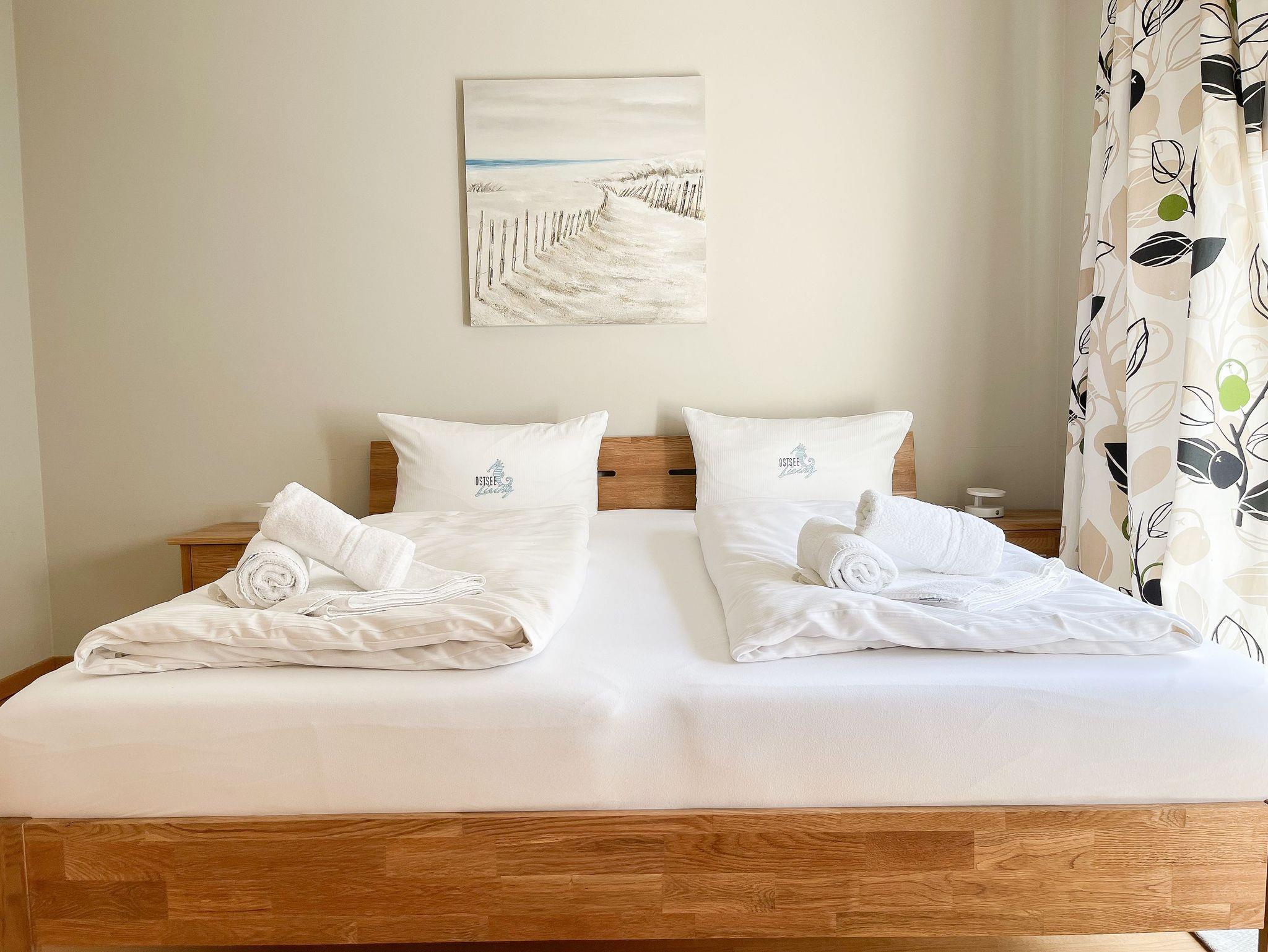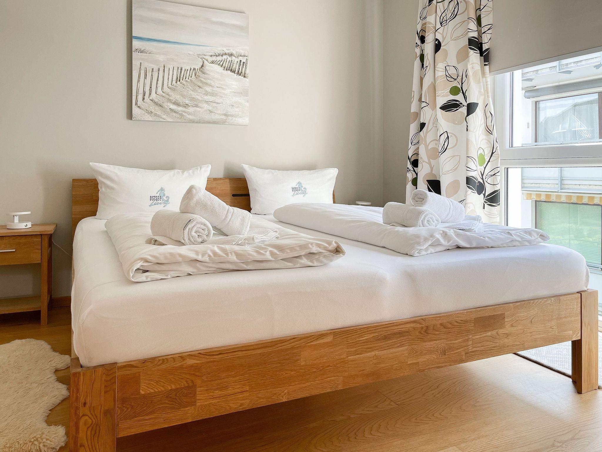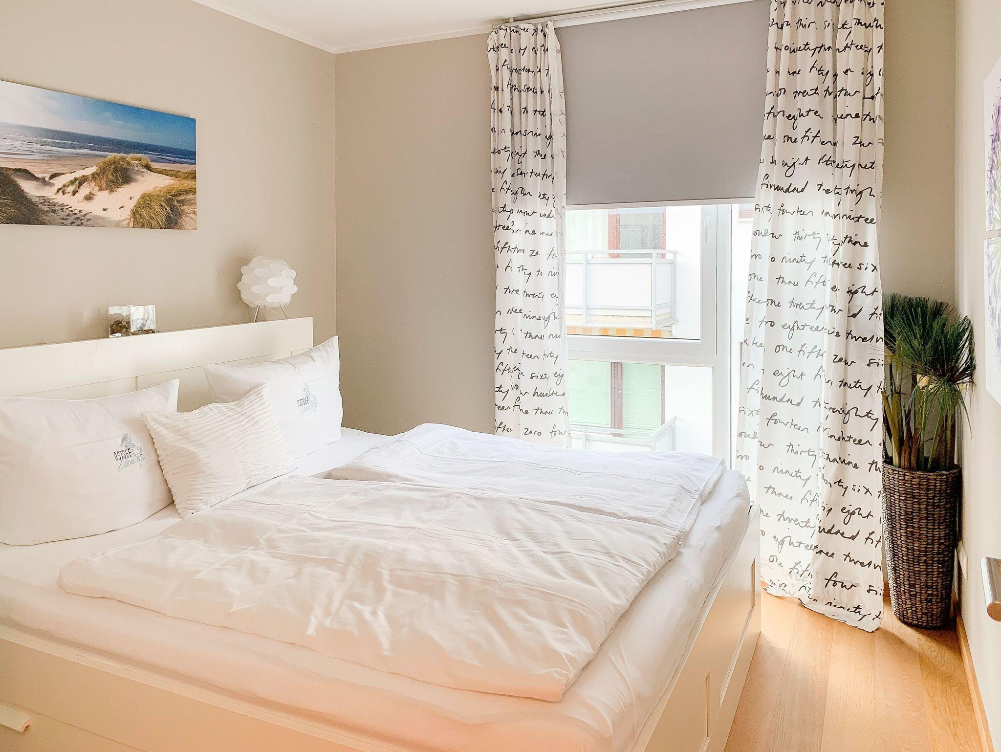 Die Ferienwohnung befindet sich im 1. OG und bietet mit 2 Schlafzimmern, einem großzügigen Duschbad und separatem Gäste WC ausreichend Platz für 4 Personen auf über 90 qm Wohnfläche.[nbsp][nbsp]Große, bodentiefe Fenster sorgen für helle, sonnige Wohnräume, die mit hochwertigem Echtholzparkett und Fußbodenheizung ausgestattet sind. Die offene Einbauküche ist komplett ausgestattet und verfügt über Kühlschrank mit Gefrierfach, Kochfeld, Backofen und Spülmaschine. Der großzügige [nbsp]Essbereich mit ausreichend Platz für 6 Personen und der geschmackvoll gestaltete Wohnbereich[nbsp] mit TV, Radio und WLAN bilden das Zentrum der Wohnung. Vom[nbsp] Nachmittag bis zu den Abendstunden lässt sich die Sonne auf dem teilweise überdachtem Westbalkon sehen.[nbsp][nbsp][nbsp]
