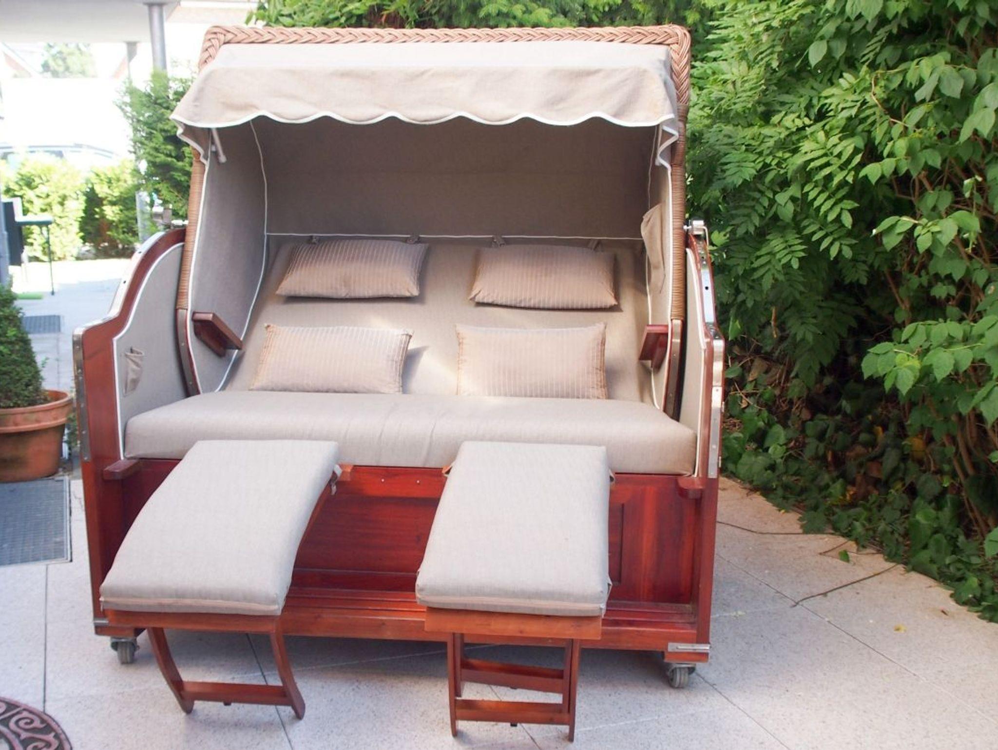 Die Ferienwohnung ist modern eingerichtet und gespickt mit netten Details. Über eine Diele geht es in die voll ausgestattete hochwertige, offene Küche. Dort findet man vom Kaffee- und Espresso-Automat über Mikrowelle bis zum Geschirrspüler alles was das Selbstversorgerherz begehrt. Im gemütlichen Wohn- und Esszimmerbereich tragen ein TV, Stereoanlage und kostenloser Internetzugang über WLAN zur Unterhaltung bei. Die hochwertige und bequeme Ledercouch wird im Handumdrehen zum komfortablen Bett (160x200). Die elektrischen Außenrollos lassen auch mal den Tag zur Nacht werden. Im Wohnzimmer finden sie auch einen der zwei Zugänge zur ca. 24 qm großen möblierten Terrasse. Mit dem extra großen Strandkorb auf Rollen haben Sie immer einen Platz an der Sonne. Der 2. Zugang zur Terrasse führt aus dem Schlafzimmer. Selbstverständlich sorgen auch hier Außenrollos für die Verdunkelung. Im Schlafzimmer steht ein Doppelbett (160x200),[nbsp] von dem aus Sie das Programm auf dem TV oder auch DVD sehen können. Das moderne Duschbad hat eine bodenebene Dusche und ist mit Haartrockner, Kosmetikspiegel und Musik ausgestattet. Ein fester PKW-Stellplatz befindet sich direkt auf dem Grundstück. Im Gemeinschaftskeller befinden sich Waschmaschine und Trockner zur kostenlosen Nutzung.