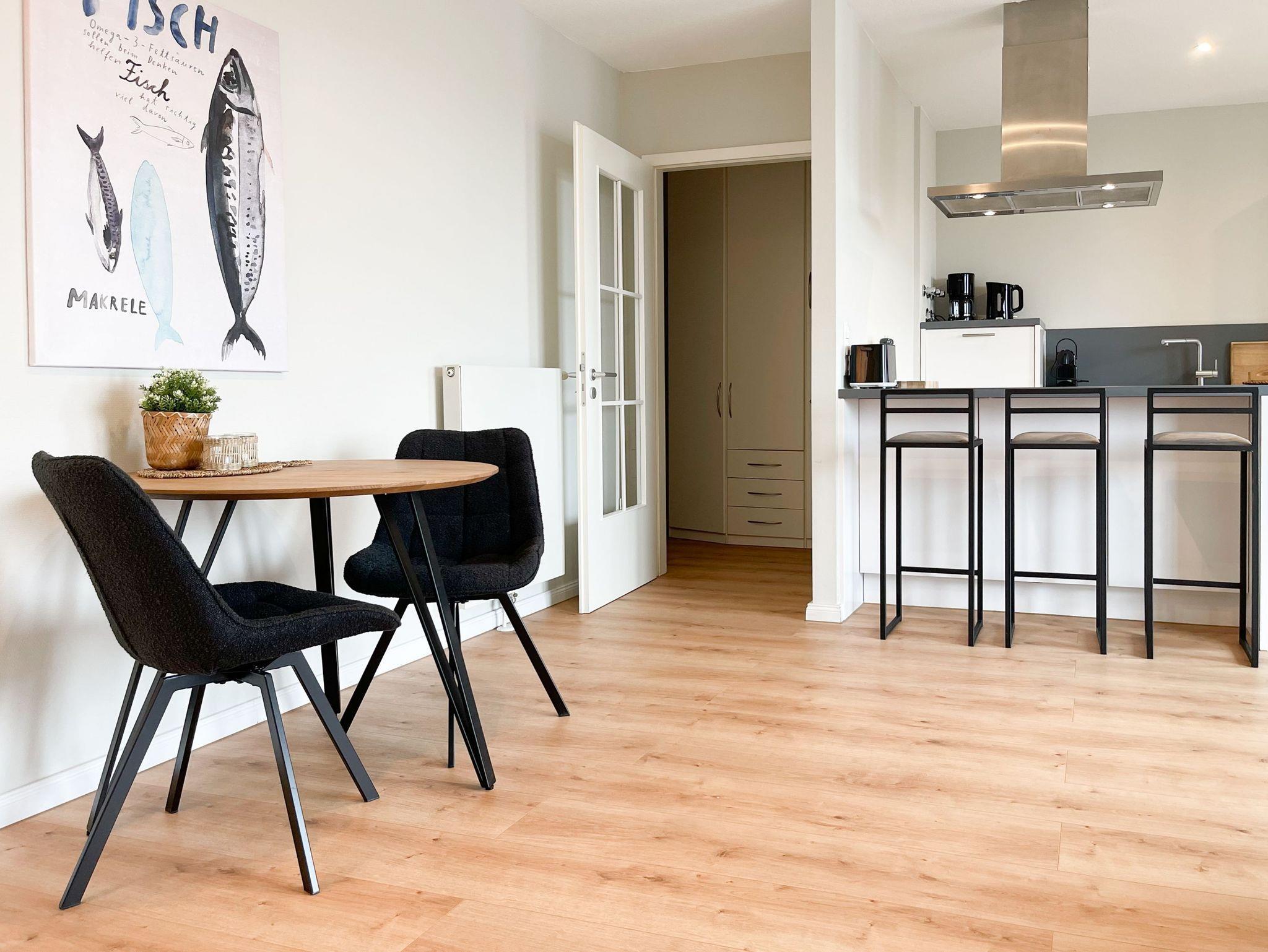 Es erwartet Sie ein hochwertig eingerichtetes und bestens ausgestattetes Penthouse mit bodentief verglasten Fensterflächen, die für lichtdurchflutete Räumlichkeiten sorgen, um in einem schönen Ambiente einen entspannten Ostseeurlaub zu verleben. Highlight ist die riesige Dachterrasse in Südwestausrichtung, die nicht nicht nur mit Gartenmöbeln, sondern auch mit einem Saunakorb ausgestattet ist und vom Frühstück bis zum Sonnenuntergang garantiert zum Lieblingsplatz wird. Der kombinierte Wohn- und Essbereich mit schönem Blick auf die vorgelagerte Dachterrasse ist mit einem hochwertigen Sofa mit Schlaffunktion, TV und Radio sowie einem Essbereich für 3 Personen eingerichtet. Im Wohnbereich erwartet Sie ein hochwertiges Sofa mit Schlaffunktion (160x195), TV und Radio. Die integrierte Einbauküche mit Kochinsel verfügt über alle technischen Geräte und eine gute Ausstattung, um allen gerecht zu werden, die Spaß am gemeinsamen Kochen haben. Das Schlafzimmer ist mit einem hochwertigen Boxspringbett (180x200) und einem zusätzlichen TV eingerichtet. Blackout Plissees sorgen für die vollständige Verdunkelung des Schlafzimmers und somit für einen erholsamen Schlaf. Ein geräumiger Kleider- und Garderobenschrank, mit ausreichend Stauraum, befindet sich im Eingangsbereich. Das Bad mit Fenster verfügt über Dusche, Waschbecken, WC, Föhn und Handtuchtrockner. WLAN steht selbstverständlich kostenlos zur Verfügung.