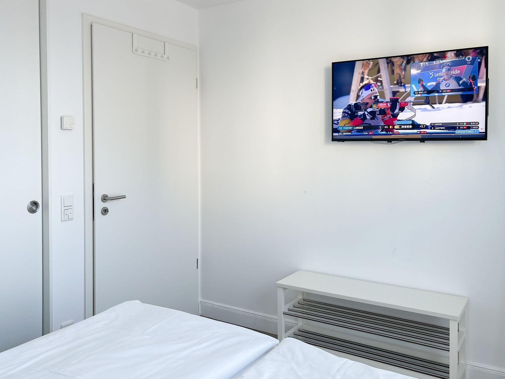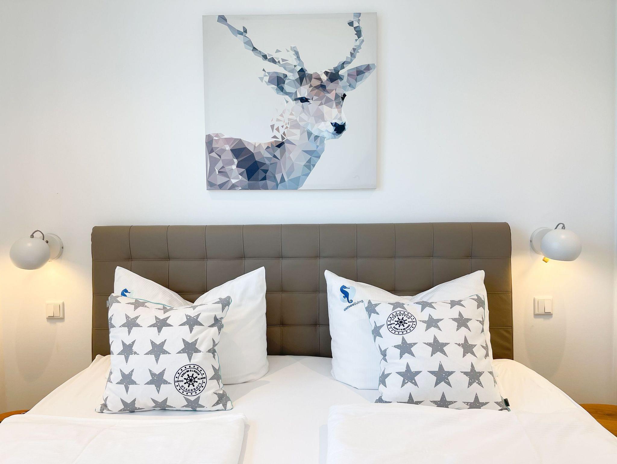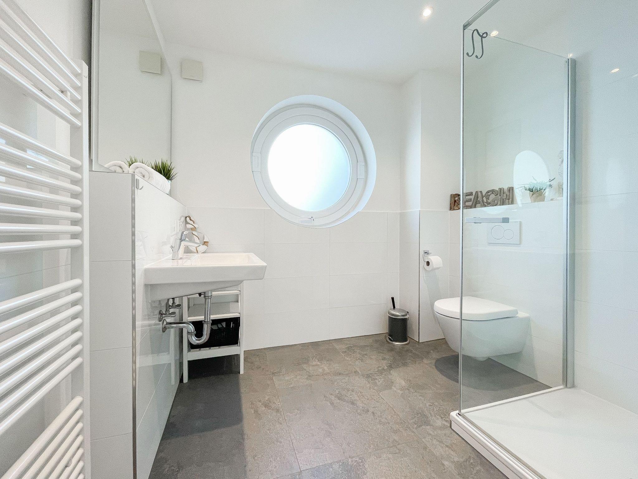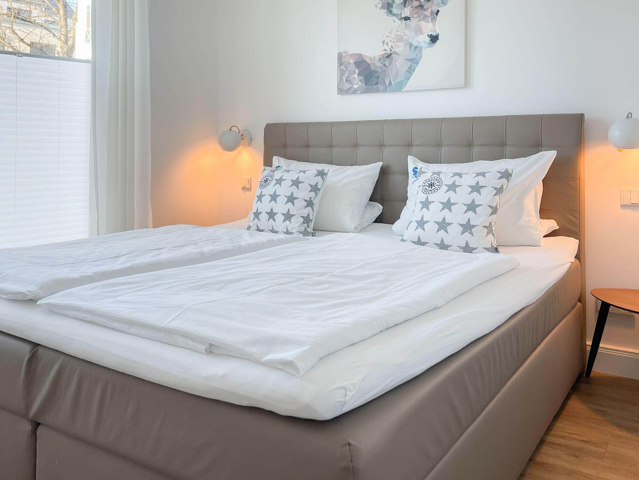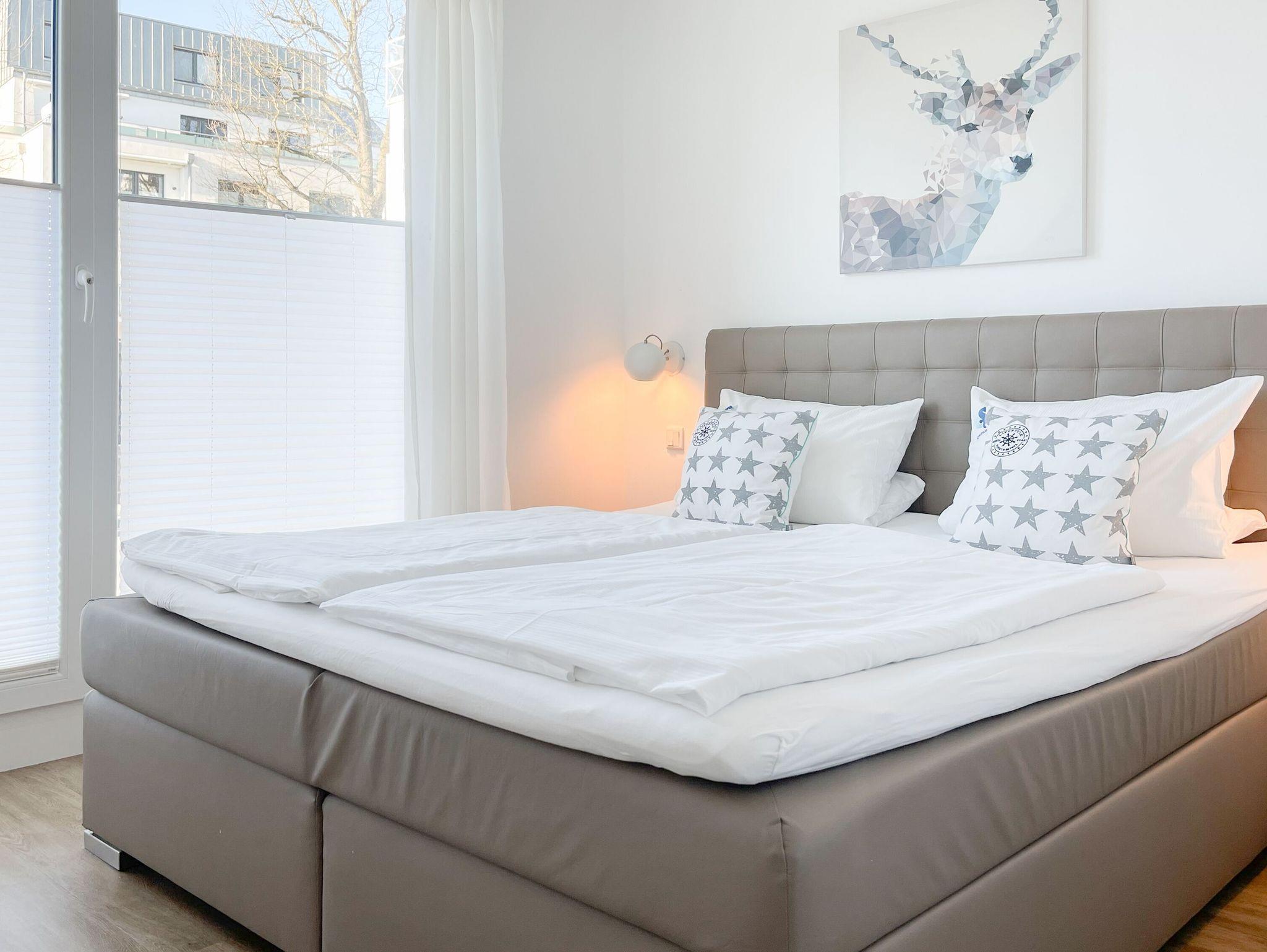 Bodentiefe Fensterelemente in der gesamten Eckwohnung, alle mit elektrischen Außenjalousien versehen, sorgen für lichtdurchflutete Räumlichkeiten. Hochwertige Bodenbeläge, die moderne, bestens ausgestattete Einbauküche und die geschmackvolle Einrichtung schaffen ein zeitgemäßes, schönes Wohnambiente. Die teilweise überdachte Sonnenterrasse ist großzügig um den gesamten Wohnbereich herum angelegt. Ausgestattet mit Gartenmöbeln und Sonnenliege ein idealer Rückzugsort zu jeder Tageszeit. Der Wohnbereich mit Terrassenzugang ist mit einem Schlafsofa (160x200), TV und WLAN ausgestattet, der integrierte Essbereich ist für 4 Personen ausgelegt. Das Schlafzimmer verfügt über ein Boxspringbett (180x200) und TV. Das hochwertige, helle Bad ist großzügig angelegt.