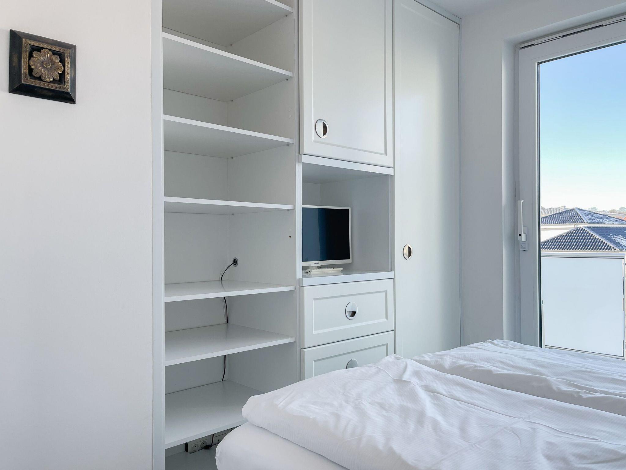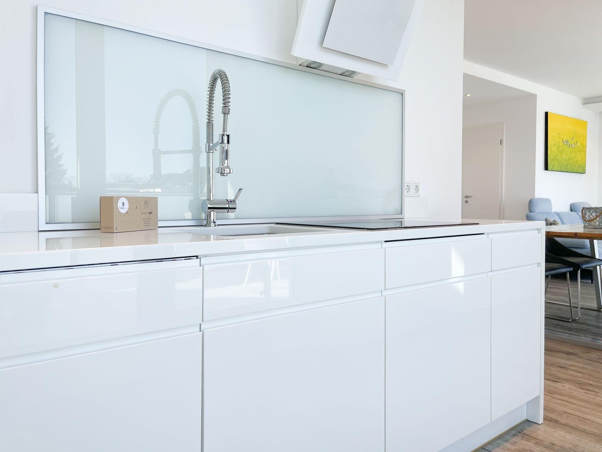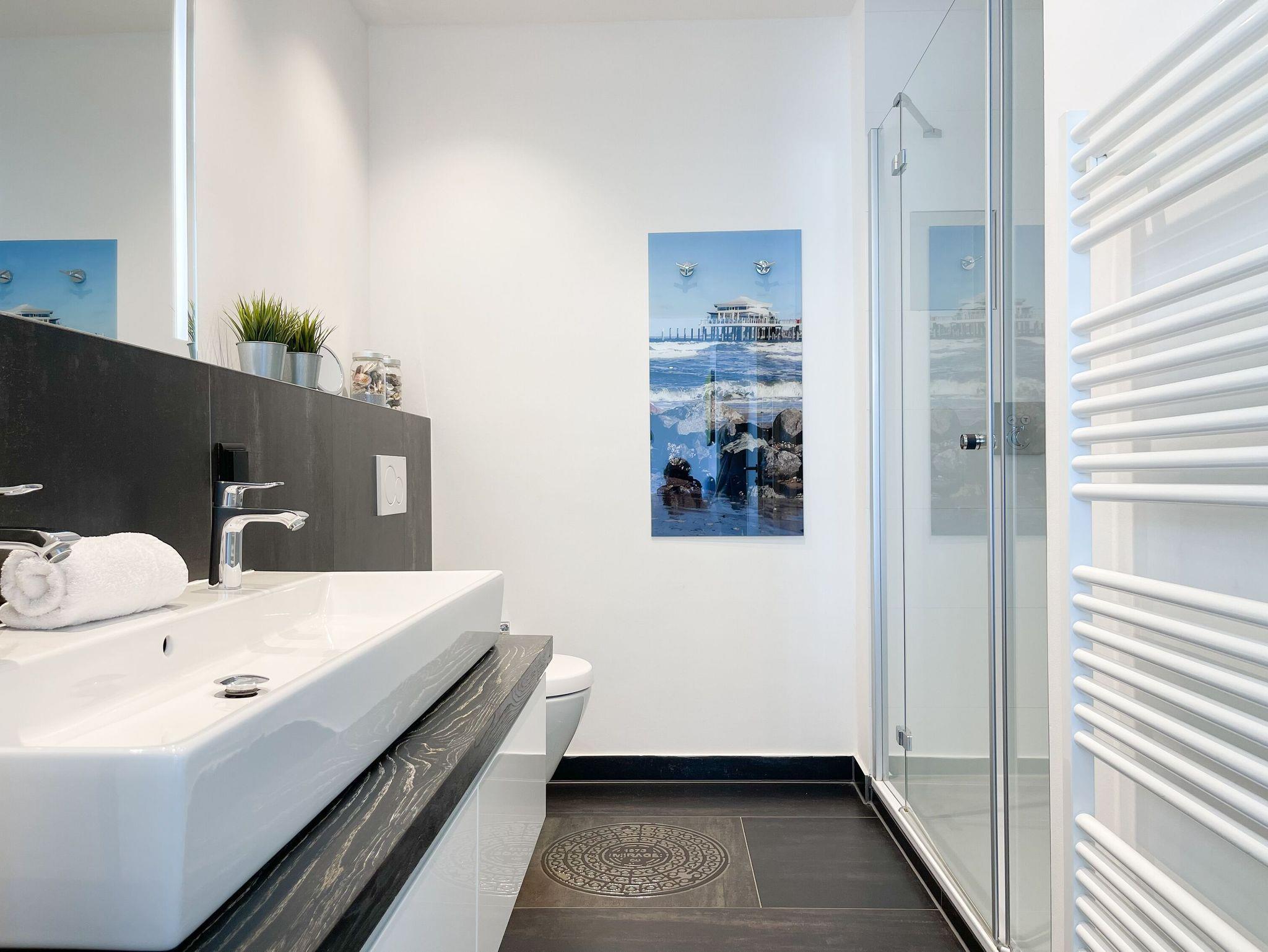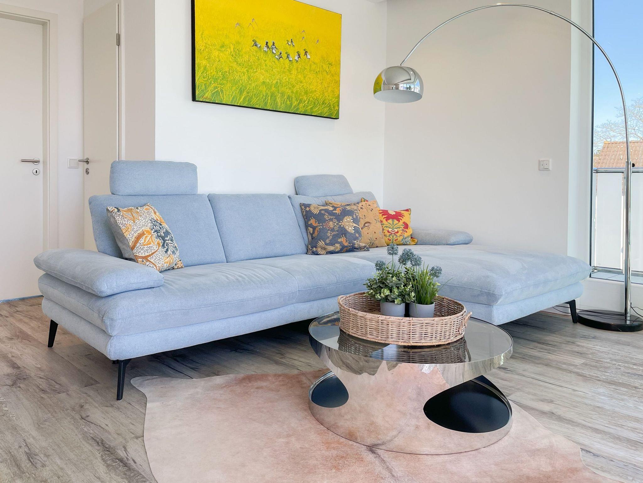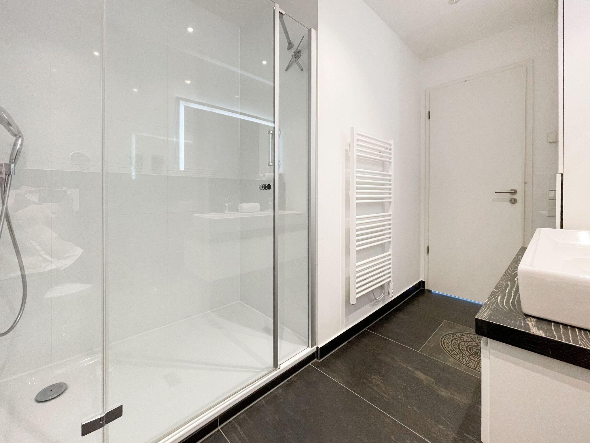 Das Penthouse bietet zwei separate Schlafzimmer mit vorgelagerten Dachterrassen, als private Rückzugsorte. Sie verfügen über Boxspringbetten (160x200),[nbsp] Einbauschränke und TV. Der großzügige Wohn- Essbereich präsentiert sich stilvoll und modern. Das Sofa ist mit einer Schlaffunktion (160x200) ausgestattet. Viel Licht und zeitgemäßer Luxus schaffen eine Atmosphäre zum Wohlfühlen. Die hochwertige Küche genügt höchsten Ansprüchen und verfügt neben allen technischen Geräten auch über einen eingebauten Weinkühlschrank. Das Designbad ist mit einem Doppelwaschbecken und einem großzügigen Duschbereich mit Rainshower und Handbrause ausgestattet. Im Einbauschrank ist eine Waschmaschine untergebracht. Ein weiteres Gäste WC steht ebenfalls zur Verfügung.